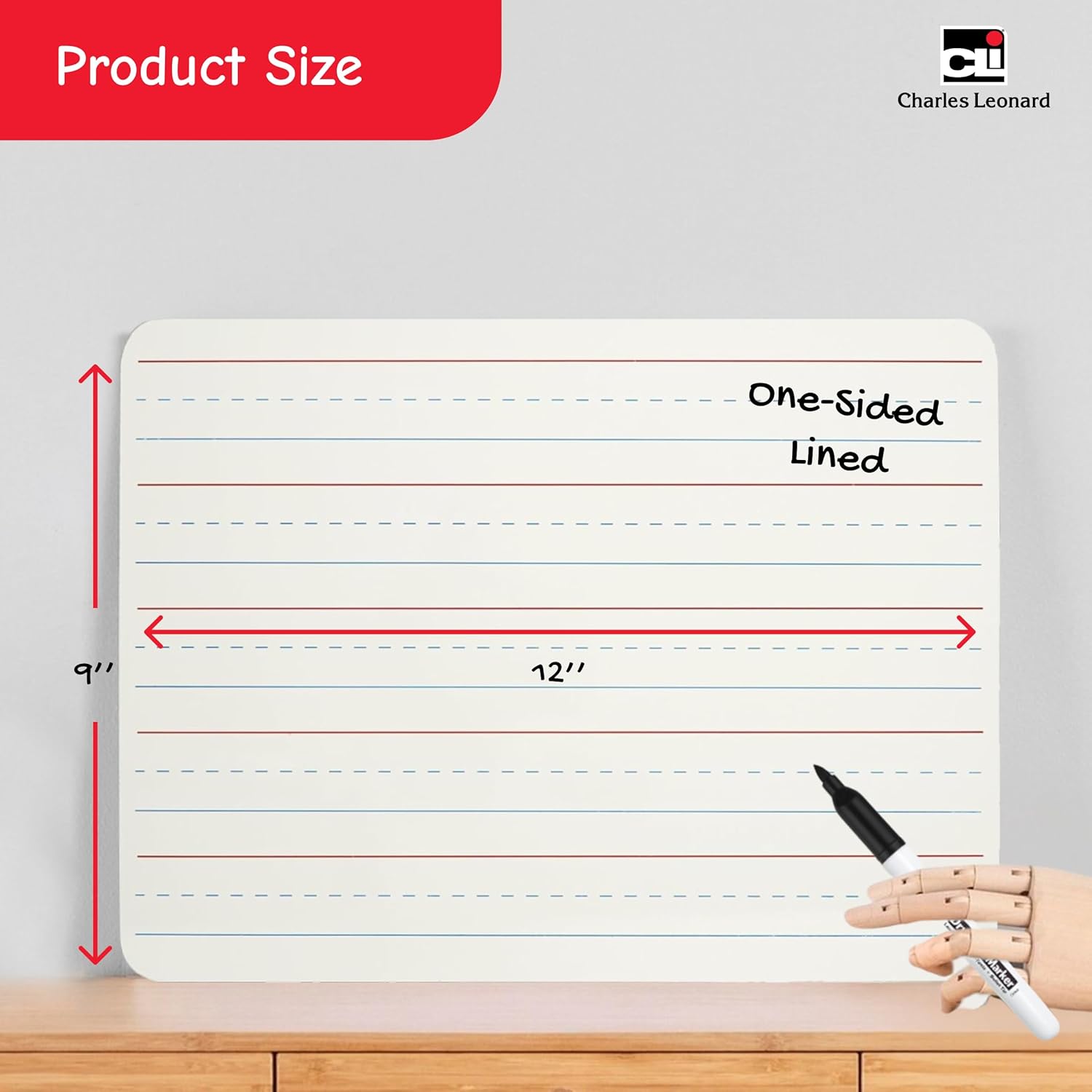 With 60 years of commitment and still going strong, Charles Leonard, Inc. is a second-generation family business. They take pride in their relationship with quality and value, which goes back to day one. Ideal for back to school, the Charles Leonard, Inc. One-Sided Dry Erase Board offers endless uses. Made of durable Masonite with rounded edges, this dry erase board has pre-printed lines on one side, making it great for penmanship and sentence writing. It can be used with all dry erase markers and measures 9 x 12 inches. This dry erase board is an environmentally friendly way to learn - just write, wipe off and re-use with no waste. Your purchase is for a case of 12 - 9" x 12", 1-Sided Lined White Boards.