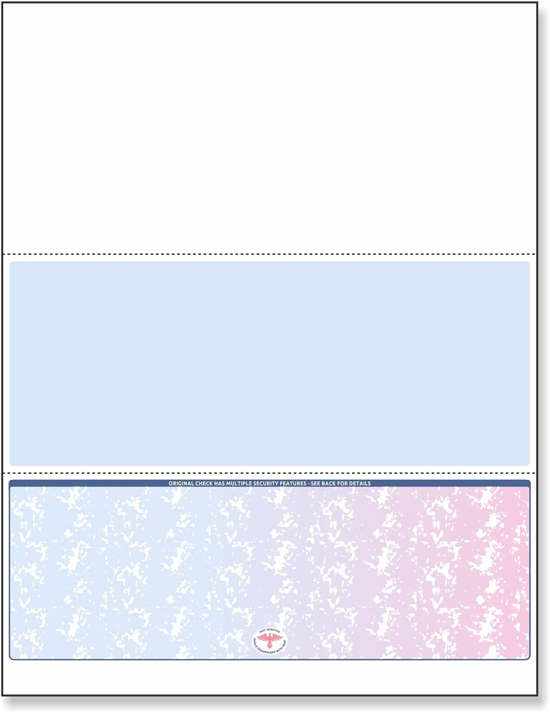 • EXCELLENT VALUE AND QUALITY - Ream of 500 BLANK - Blue Laser Check Paper - Check on the Top, BLANK with no bank or private info printed.