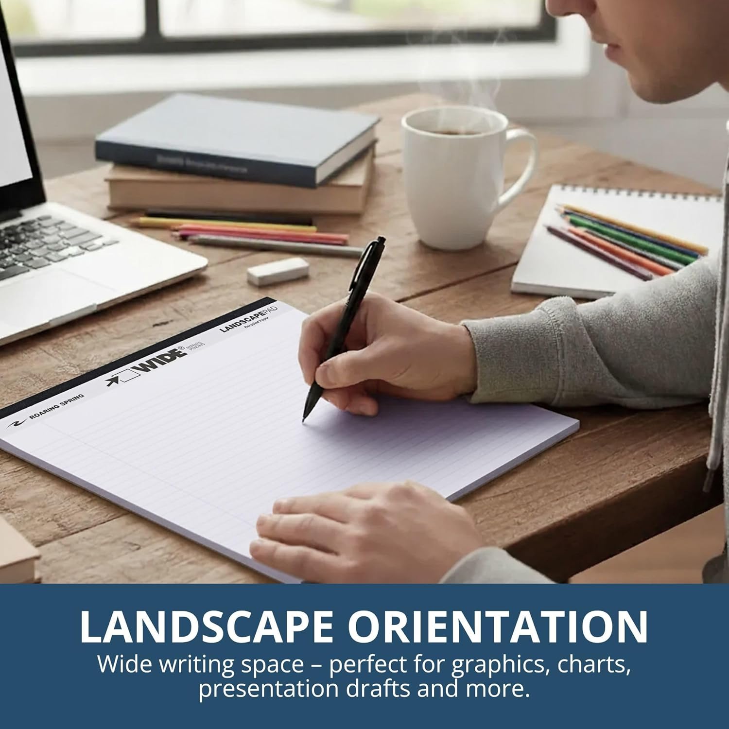 Take your note-taking and organization to the next level with the Roaring Spring Wide Landscape Legal Pad. Featuring a unique 11" × 9.5" landscape format, this pad is perfect for wide-format writing such as spreadsheets, charts, or lecture notes. The college-ruled layout with margin provides a clean, structured space that keeps your work neat and professional. Each pad contains 40 sheets of smooth, 20 lb recycled paper, made with at least 30% post-consumer fiber. This eco-friendly design ensures high-quality performance while supporting sustainable practices. The sheets are micro-perforated for quick, mess-free removal, so you can easily file or share your work without torn edges. With stapled and taped binding plus a sturdy chipboard backing, the pad offers lasting durability and a stable writing surface, even when you’re away from your desk. Proudly made in the USA, the Roaring Spring Wide Landscape Legal Pad delivers the ideal blend of functionality, eco-consciousness, and reliability—making it a trusted choice for students, professionals, and anyone who values high-quality paper products.