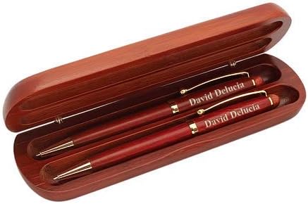 Most of us have family or friends in the military, and are proud of their bravery and service to the country. When our VIP?s have completed the rigors of boot camp, and are ready to begin their new assignmen's after graduation we get the opportunity to honor their dedication and love for their country. Our genuine solid rosewood case and double pen set is a beautiful way to acknowledge their achievemen's, provide a keepsake that they will have for years, and give something that can easily travel with them to their next base assignment or activation. The case is personalized with the Army emblem, and has two lines available for name, rank, division or whatever you would like to include for your text. The pens are matching, with rosewood finish and gold accent trim, providing an elegant desk set that they?ll be proud to use even years later as a veteran. And, speaking of veterans, this is a great idea to give you'retired-military dad or other veteran for birthday, holiday or Father?s Day! We will package the set in an attractive gift box that's ready to present at graduation or other celebration, and will send it with our Full Satisfaction and Performance Guarantee! Genuine cherry wood double ballpoint pen setIncludes a laser engraving of the Army emblem along with up to two lines of personalization Cherry wood design with gold accents Packaged in a gift box Dimensions: 6 3/4" x 1 7/8" x 7/8"