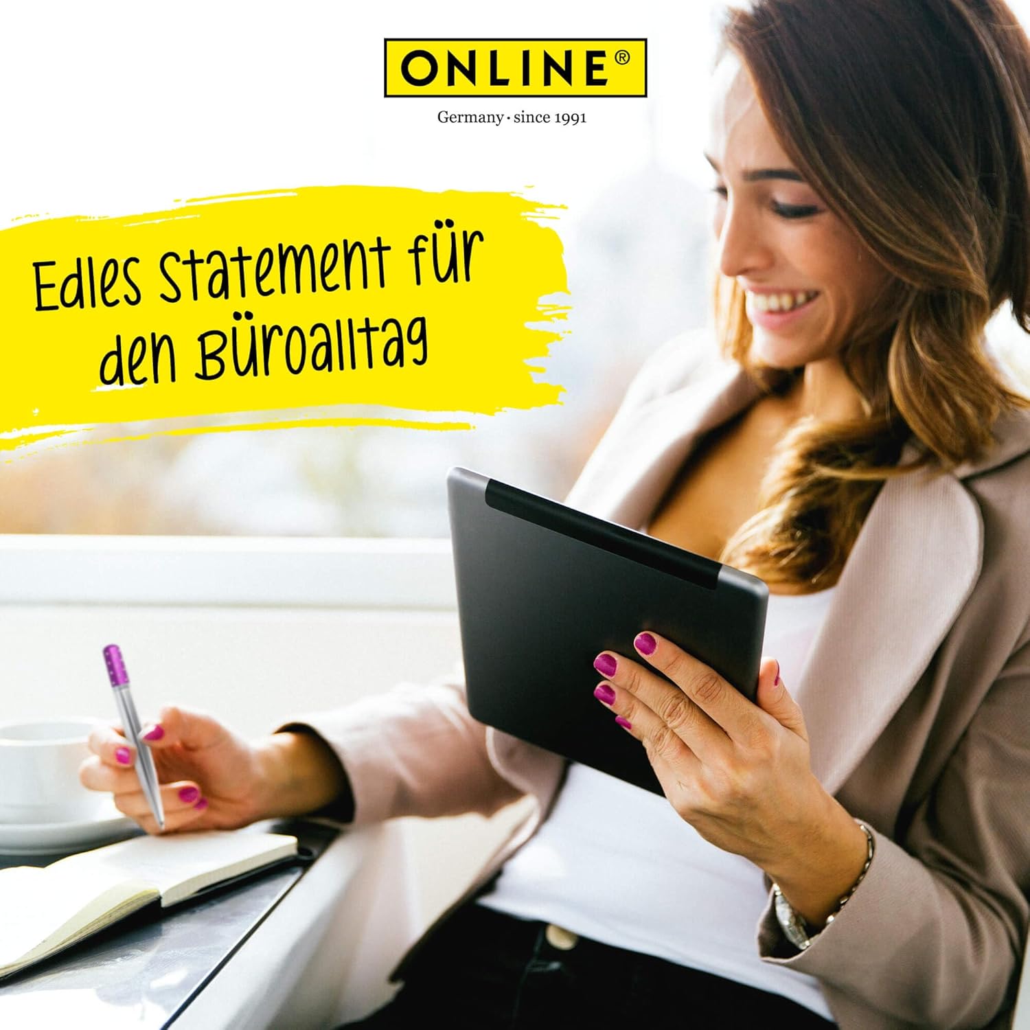 The Crystal Pen combines stylish glamour with unparalleled functionality. This elegant ballpoint pen, adorned with sparkling glitter stones, is more than just a writing tool - it makes a real statement. With its elegant design, it adds a luxurious touch to any desk and adds glamorous accents to any piece of writing. Whether as an elegant gift for special occasions or as a personal companion, the Crystal Pen always ensures a stylish writing experience. Equipped with the practical G2 standard refill in classic black, it offers not only an attractive look, but also an excellent writing experience.