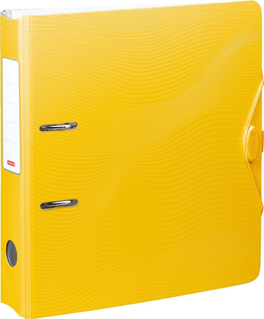 Highlights: More compact dimensions and lighter weight characterise this special folder, so it fits effortlessly in any backpack. With its 450 g, it is around 20% lighter than comparable products. Secure closure thanks to a practical elastic band, easy to open and very high-quality ring mechanism, practical finger hole on the waistband, rado-eyelets that reliably prevent the folder from unintentional opening, pen tab and slip pocket inside the folder. Made of strong and durable PP material. The elegant wave look on the surface of the folder rounds off the overall concept.