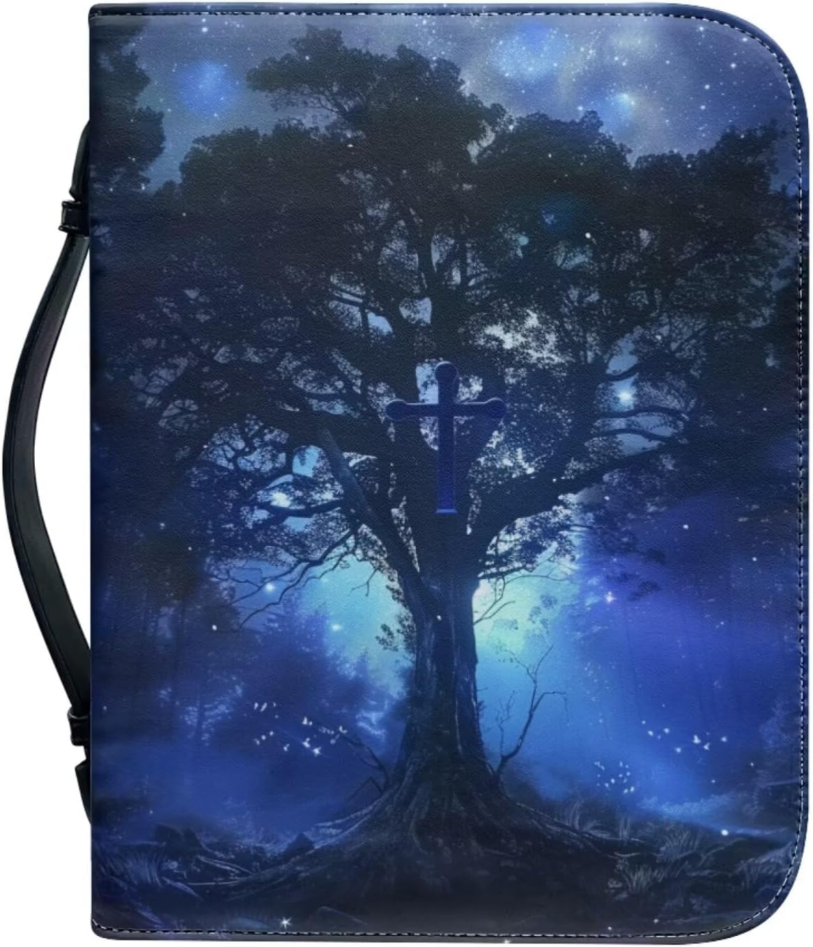 PU Leather Bible Cover Carrying Book Case Church Bag Bible Protective Bag with Handle and Zipper Closure, Perfect Gift for Men Women Father KidsProduction InformationMaterial: Multi-functional, lightweightPattern: Multicolor pattern printedFearures: PU leather, protable, waterproof, handleMulti-Pockets:1 bookmark belt;2 side poket ;1 bookmark slot;3 pen slots;1 vertical pocket;Muti-functional: This bible holder case can be used as a wallet style handbag, portable backpack, makeup bag, tablet case, bible study bag, stationery pencil case, document bag, briefcase, journal supplies organizer, book case/cover and more.Occasion: You can carry it to churches, libraries, study rooms, worship and pilgrimages for bible learning.NotesPlease allow little color difference due to different camera or light environment.Due to different measurement methods, it is reasonable for 1-2cm size deviation.If you have any questions, please leave your messages, we promise to reply you within 24 hours and offer you best services. Thanks for coming to my store and enjoy your shopping!