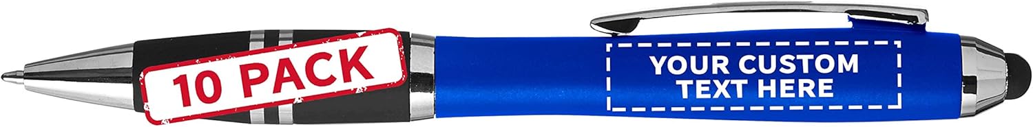 Custom printed stylus pens are great promotional tools that keep your marketing campaign current and effective. Use these ballpoint iPens around the office, at special events or as unique items for your promotional giveaways. Our personalized stylus pens feature a two-in-one pen and stylus, a stylish plastic barrel and black grip with silver accents. Available in variety of colors - Black, Silver, Blue, Green, Red, and Purple. Features: FAIR VALUE- these stylus grip ballpoint ipens are available in blank ink which provide an excellent and valuable promotional tool at a fair price. PERFECT FOR - salespersons, company giveaways, corporate events, and other brand awareness events alike. ERGONOMICAL and BRIGHT COLORED - designed to stand out in a crowd with their eye-catching metallic colored barrels.