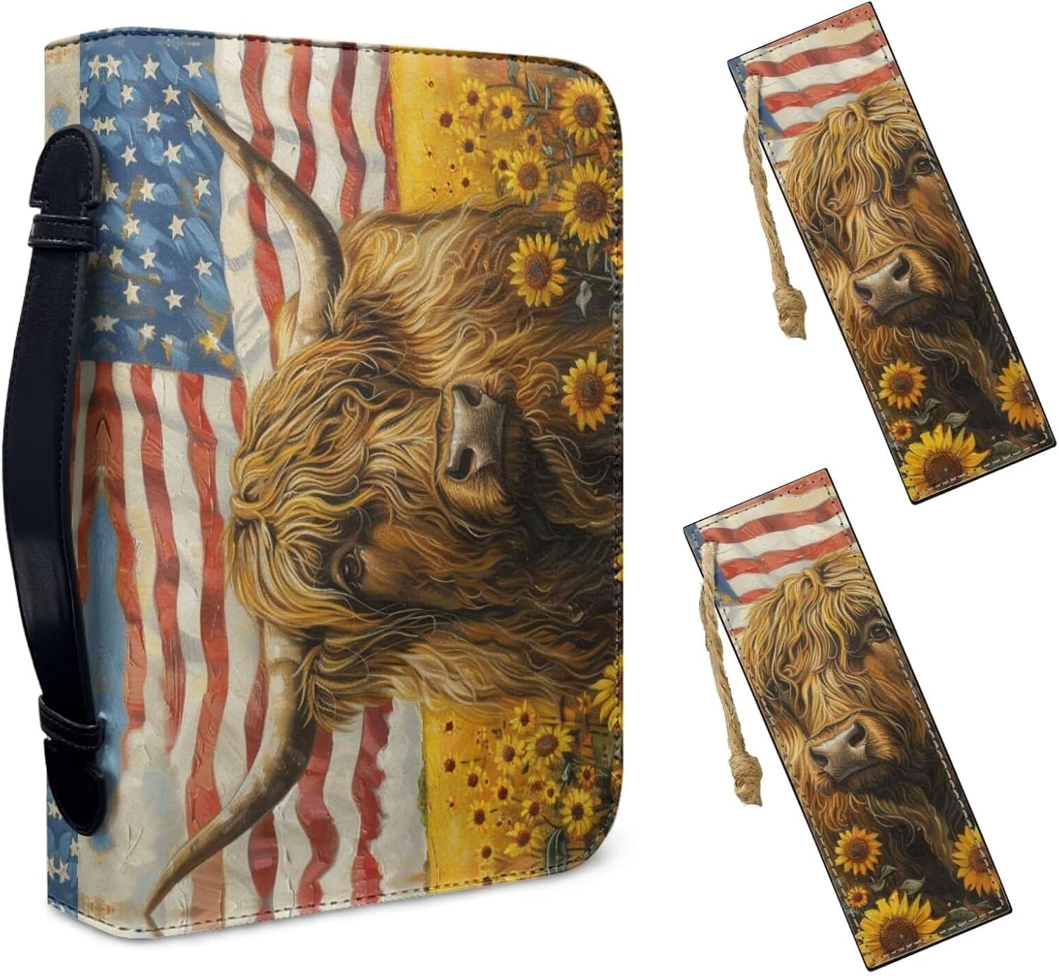 A set includes 1 Bible cover and 2 bookmarks. The Bible cover and bookmark are made of PU leather material, which is easy to carry and durable. Size: M: 9.2 x 6.3 x 1.6 inches L: 10.2 x 7 x 1.9inches XL: 11.2 x8 x 2.2 inches 2XL: 12 x 9 x 2.4 inches The size is the size of the bag, not the size of the book. Features: Our bags are made of wear-resistant and damage resistant materials, which can be used for a long time while also protecting your books well. Our bags can be used as Bible cover, wallets, handbags, makeup bags, storage boxes, tablet boxes, briefcases, diary organizer, and more. The perfect gift for family, friends, and colleagues on birthdays, holidays, Mother's Day, Easter, Halloween, anniversaries, Valentine's Day, Thanksgiving, and Christmas. Our Bible cover comes with handles for easy carrying. When reading the Bible, the bag can also be fully unfolded, making it convenient for you to read without taking out books. Our bookmarks are made of high-quality leather, waterproof material, which is durable and reusable. At the same time, it can prevent infiltration and effectively protect your personal information. Warm tips: It is recommended to wash by hand and wash with cold water. Do not soak for a long time, do not bleach, and do not expose to prolonged sunlight. The display effect of this picture is for reference only, and the final effect is subject to the actual product. Due to objective factors such as production batches and machinery equipment, it is difficult to avoid or there may be slight color differences, position and size errors.