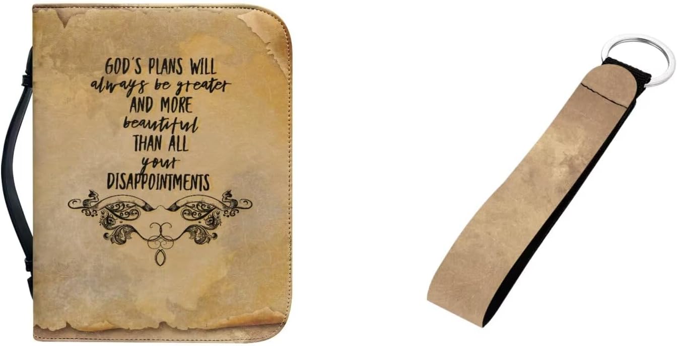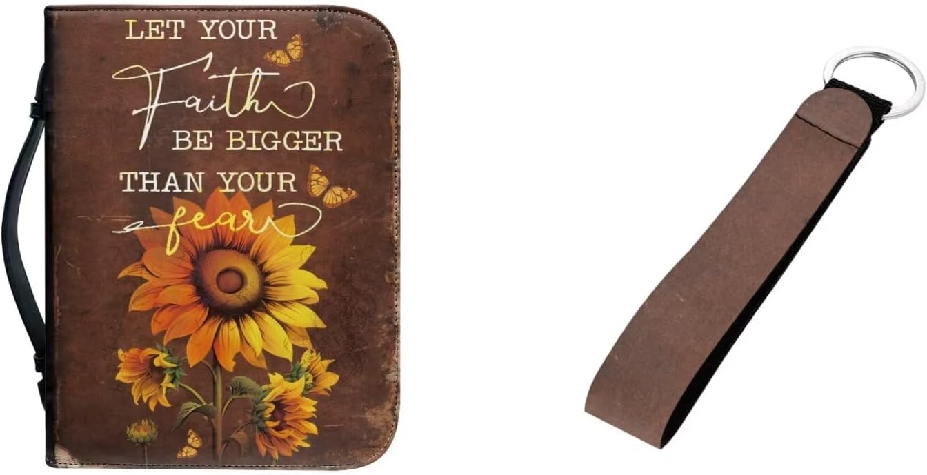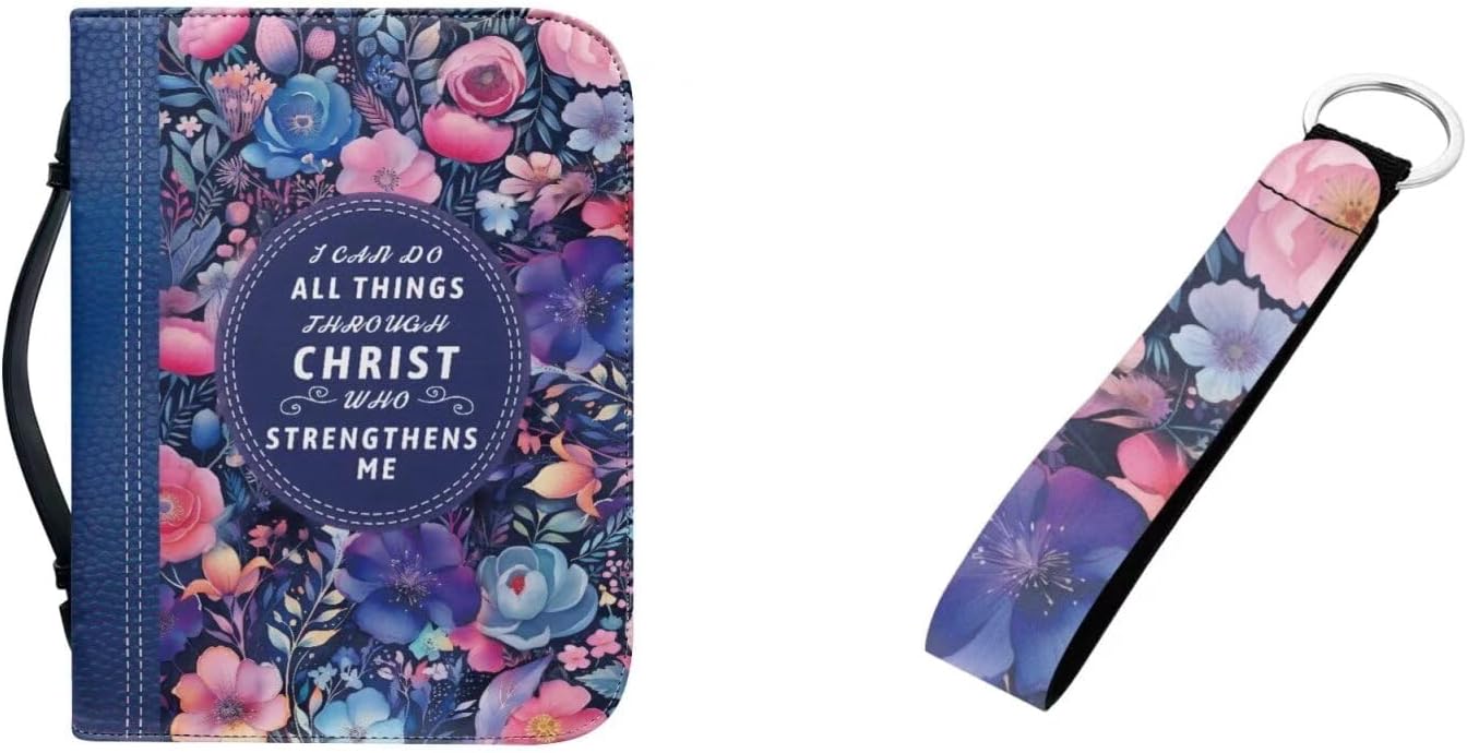 Tomeusey Leather Bible Cover + Keychain 2 Pcs for Women Men,Small Book Cover Holds & Protects with Handle and Zipper 🌸【Packaging Includes】 -1 leather bible bag + 1 keychain 🌸【4 Sizes】 -M: 9.2*6.3*1.6 inch-(23.4x16x4.1cm); -L: 10.2*7*1.9 inch-(25.9x17.8x4.6cm); -XL: 11.2*8*2.2 inch-(28.5x20.3x5.9cm); -2XL: 12*9*2.4 inch-(30.5x22.9x6.1cm). -Perfect for most sizes of bible, books, tablets, etc. Please carefully refer to our detailed size chart before purchasing. 🌸【Large Capacity】 -This Bible bag has a large capacity and is equipped with an internal multifunctional storage space, making it perfect for storing Bibles, fluorescent pens, prayer diaries, bookmarks, etc. The organized storage allows you to quickly and accurately find what you need. 🌸【Applicable Scenarios】 -This Bible bag not only neatly stores the Bible, notebook, prayer card, pen, and study materials, but also allows you to take it to school, church, library to study the Bible, worship, or pilgrimage. 🌸【Washing Method】 -It is recommended to wash by hand and wash with cold water. Do not soak for a long time, do not bleach, and do not expose to prolonged exposure to sunlight. 🌸【Note】 -Please contact us if you have any questions about the use of our product. 💡About Tomeusey Brand We are a company integrating production and sales. If you have your own design, we provide custom Bible cover service. we also provide a variety of color style products for you to choose, we are committed to bringing customers a new experience, and maximizing the experience of your life!