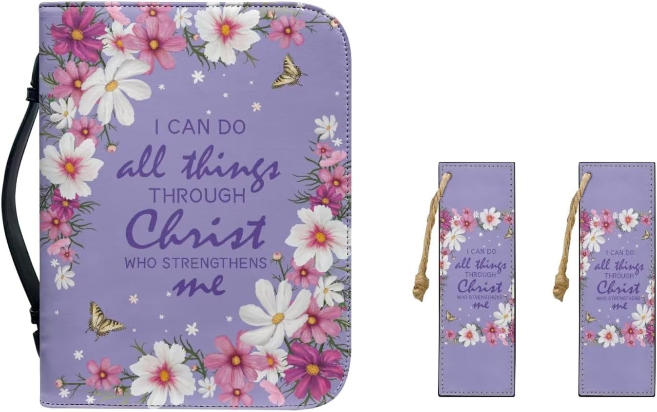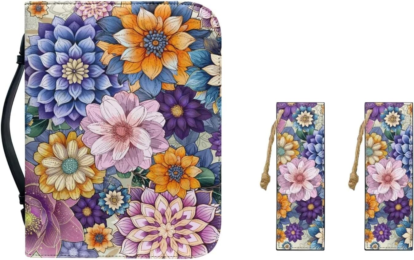 Psaytomey PU Leather Bible Cover Carrying Book Case Church Bag Bible Protective Bag with Handle and Zipper Closure, Perfect Gift for Men Women Father Kids Production Information Material: Multi-functional, durable, lightweight Pattern: Multicolor pattern printed Fearures: PU leather, protable, waterproof, handle Multi-Pockets: 1 bookmark belt; 2 side poket ; 1 bookmark slot; 4 pen slots; 1 vertical pocket; Muti-functional: This bible holder case can be used as a wallet style handbag, portable backpack, makeup bag, tablet case, bible study bag, stationery pencil case, document bag, briefcase, journal supplies organizer, book case/cover and more. Occasion: You can carry it to churches, libraries, study rooms, worship and pilgrimages for bible learning. Notes Please allow little color difference due to different camera or light environment. Due to different measurement methods, it is reasonable for 1-2cm size deviation.