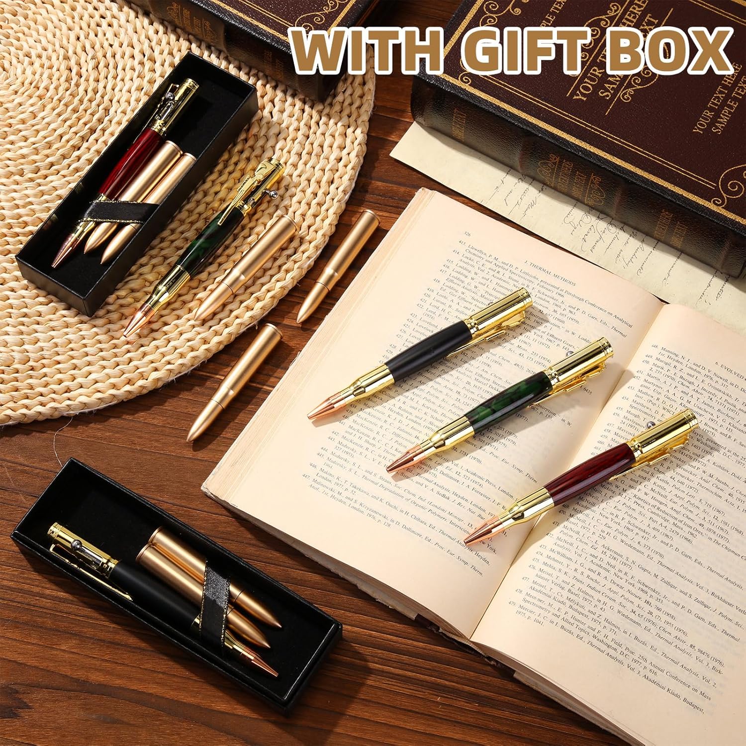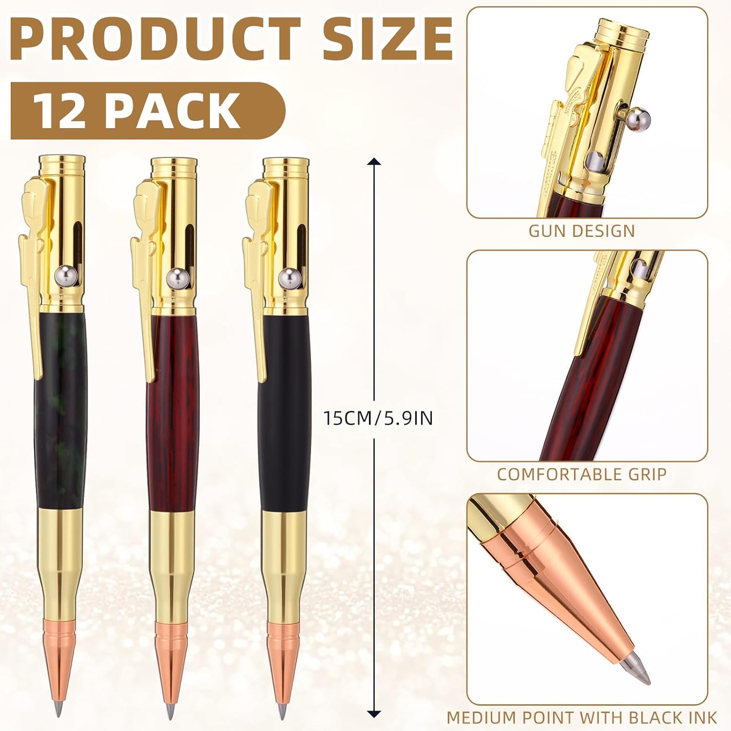 | Included Components | 24 bullets shaped ball point pens, 12 black gift box |