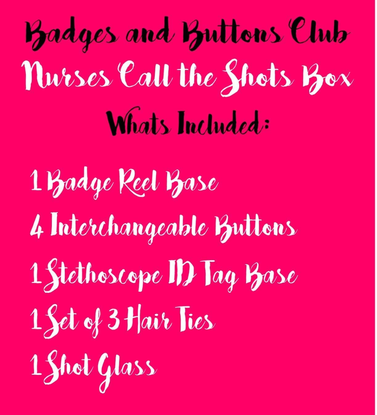 Badges and Buttons Club has created the perfect gift box for a nurse or any healthcare professional. This “Nurses Call the Shots Box” has all you need to deliver that perfect surprise. Our items are all handmade so you know you are getting a box that has been well thought out and made with care. All Buttons are interchangeable with our bases. What’s included: 1 Badge Reel Base 3 Interchangeable Buttons (Interchangeable with all our bases) 1 Stethoscope ID Tag Base 1 Set of 3 Hair Ties Please note that the actual box color may differ as it is dependent on the color of boxes on hand when ordered. The typical color will be pink, black or white.