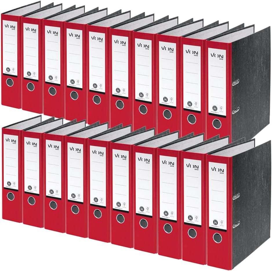 VON Leitz A4 folder, pack of 20, 100% recycled paper, 80 mm spine width, by Leitz Leitz, for 600 sheets, blue angel & FSC certified, for school, study and home, black, 10530095