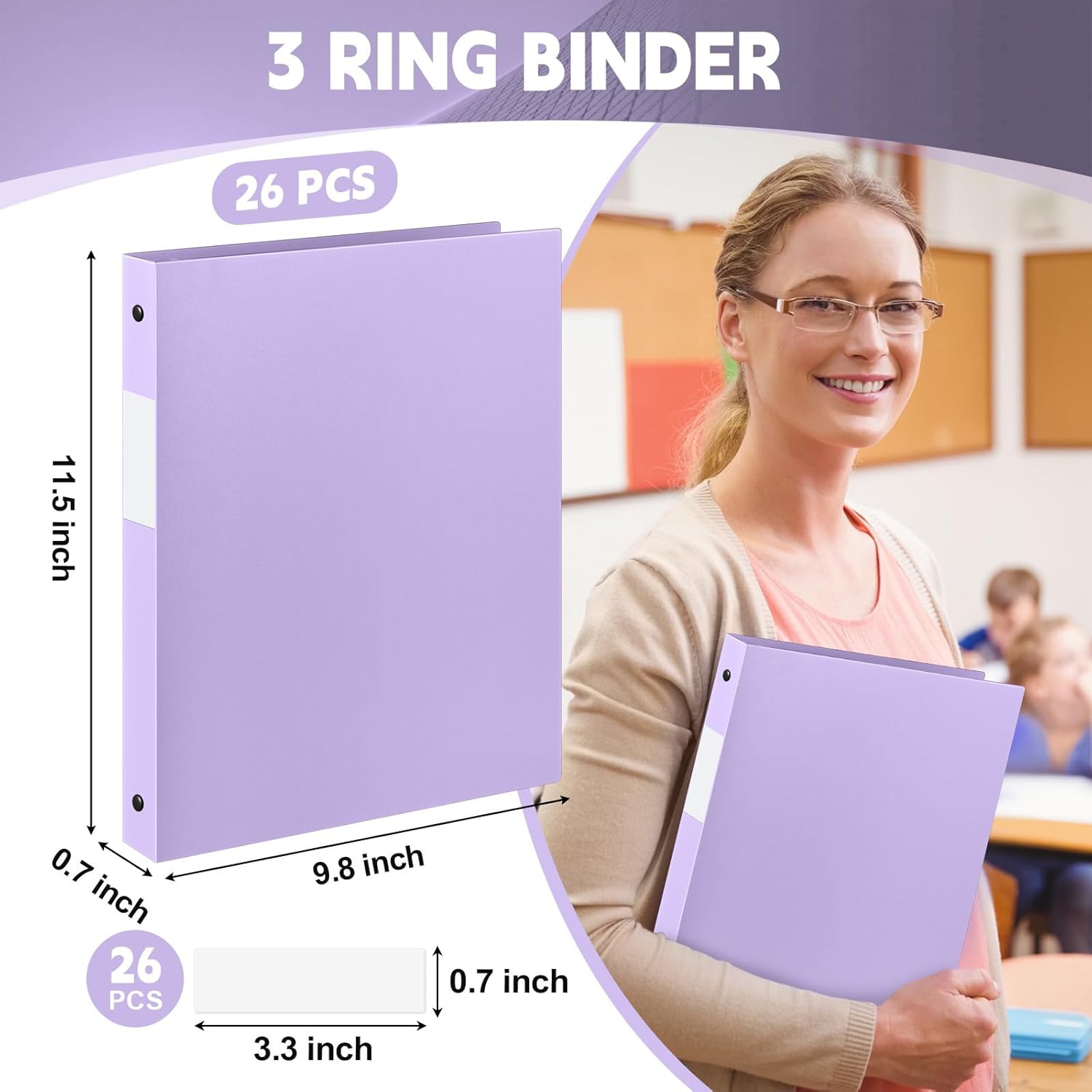 Features: Bulk package for various uses: Order our three ring binder in bulk. It's the nice solution for sorting, storing, and organizing large volumes of paperwork either in the office, school, or at home. The utility is endless and it effortlessly complements your digital information. Uncompromised convenience with loose leaf: Our three ring binder features a user friendly format that's suitable for your use on the go as a mobile workstation. The rings open easily to add or remove pages, which making it your nice partner whenever you're organizing loose leaf sheets or notebook binders. Specifications: Material: plastic Color: light purple Size: about 11.61 x 9.65 x 0.91 inches/ 29.5 x 24.5 x 2.3 cm Package includes: 26 x Flexible 3 ring binders Notes: Manual measurement, please allow slight errors on size. The color may exist a slight difference due to different screen displays
