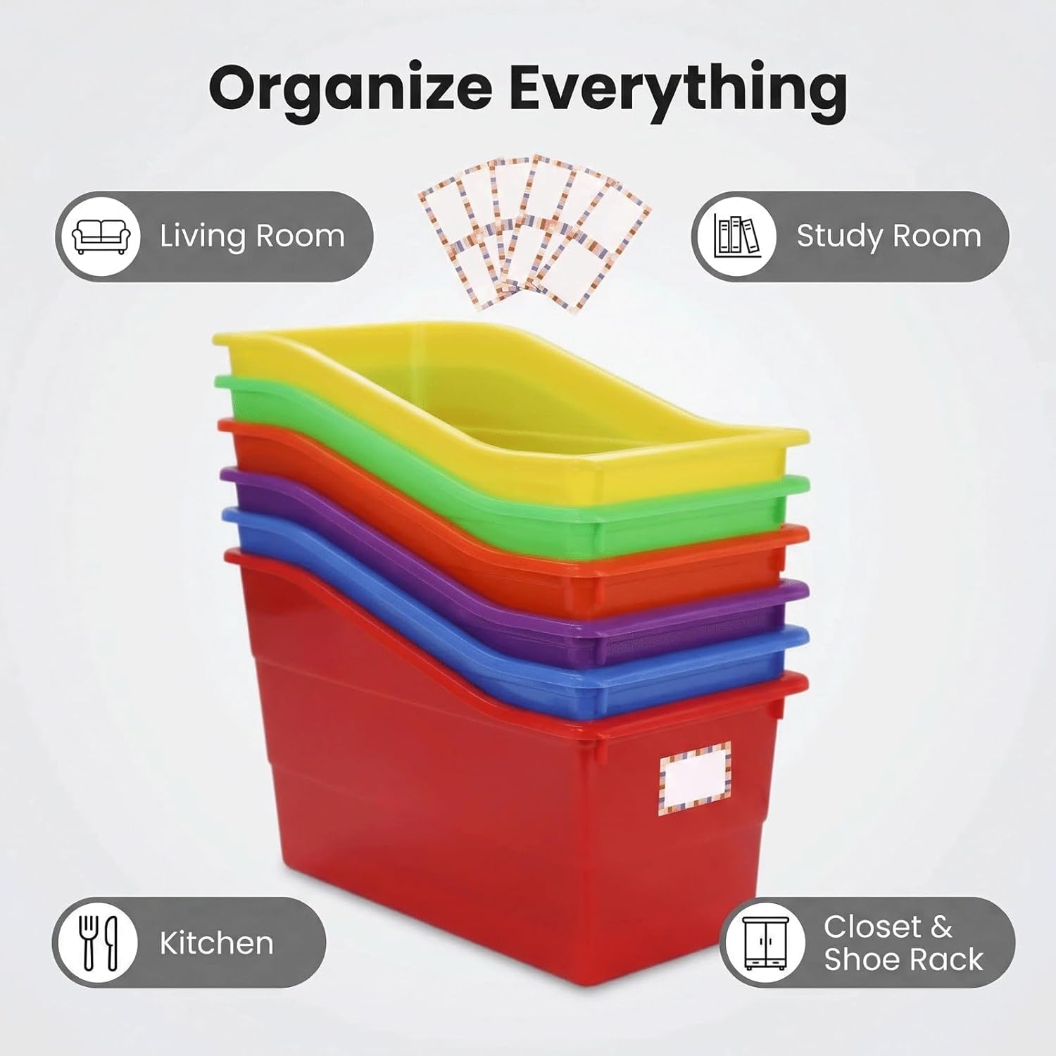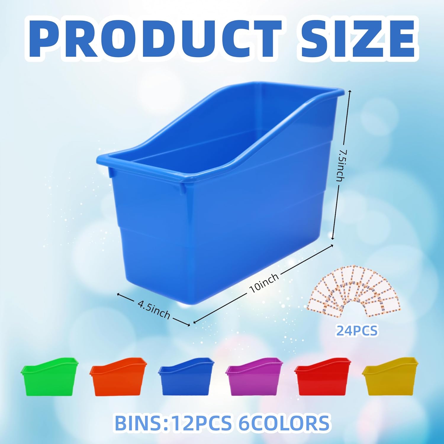 | Included Components | 12-Pack Book Organizer Bins, 24 Customizable Adhesive Labels |