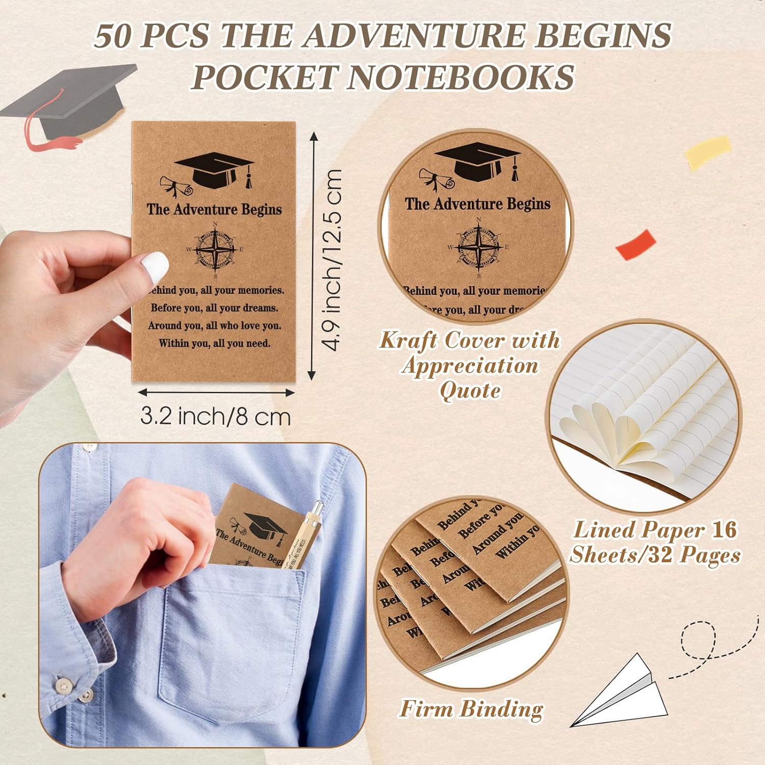 Features: The reliable quality make the motivational pens and notebooks suitable gift choices for you to share with your classmates, friends, or colleagues to let them enjoy the convenience of our products. Measuring at approx. 3.15 x 4.9 inches/ 8 x 12.5 cm, the notebook is easy for you to carry without taking too much space. Specifications: Material: Motivational notebooks: paper Motivational pens: bamboo, ink Motivational keychains: wood, alloy Color: black ink Size: Motivational notebooks: about 3.15 x 4.9 inches/ 8 x 12.5 cm Motivational pens: about 5.36 x 0.4 inches/ 13.6 x 1 cm Motivational keychains: about 1.6 x 0.3 inches/ 4 x 0.7 cm Package includes: 50 x Motivational notebooks 50 x Motivational pens 50 x Motivational keychains Notes: Manual measurement, please allow slight errors on size. The color may exist a slight difference due to different screen displays.