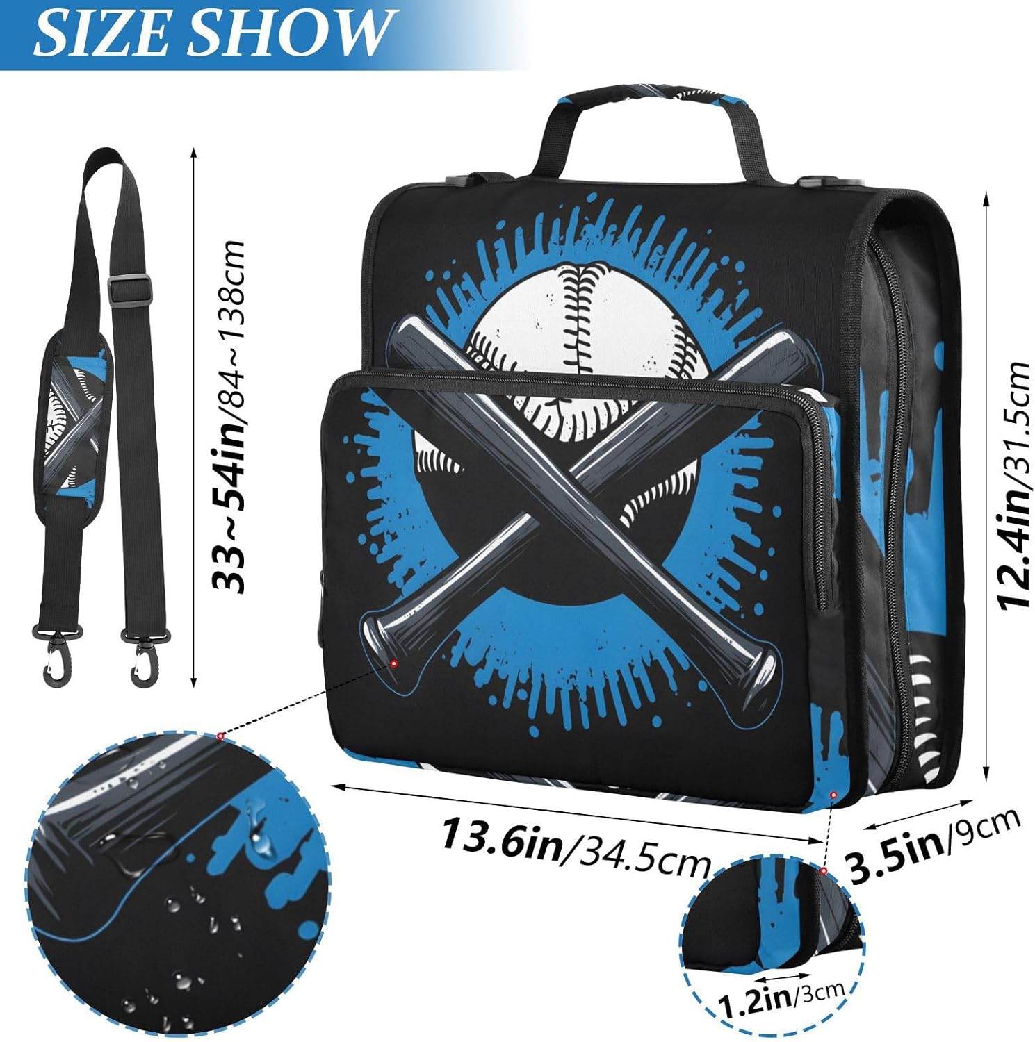 Baseball Bat Zipper Binder 3 Ring Binder with Shoulder Strap 500 Sheet Capacity Storage Organizer File Folder