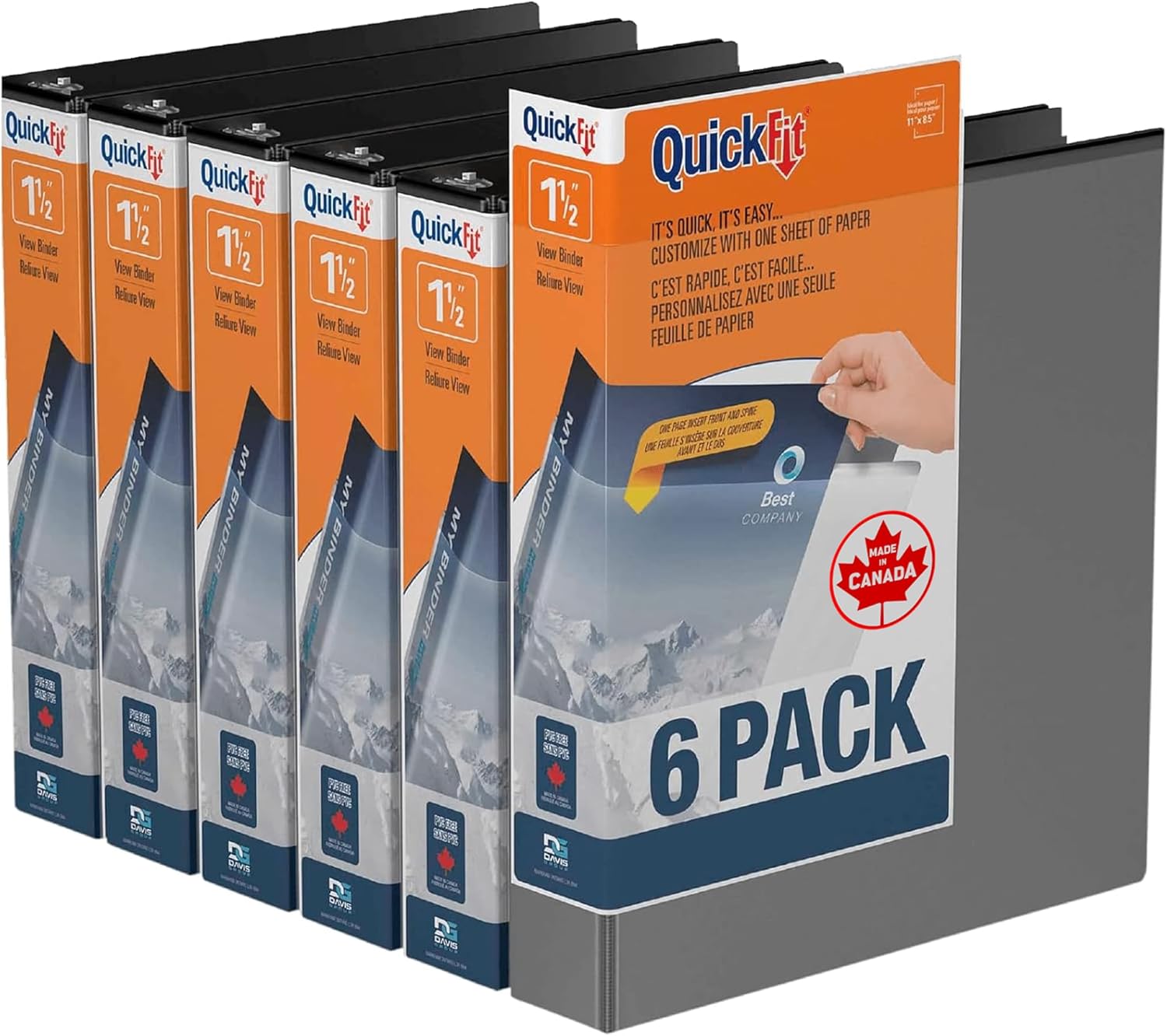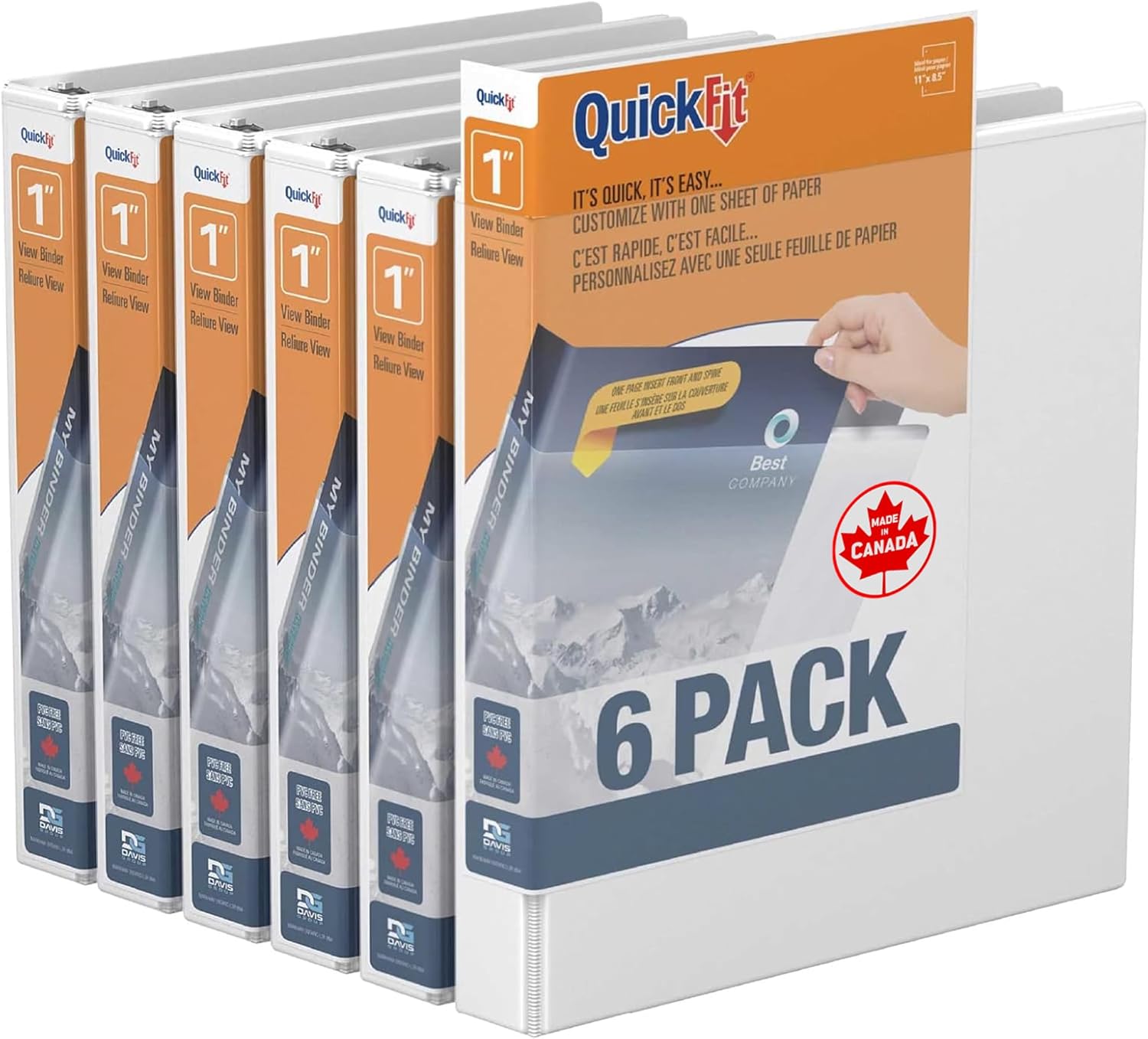 Organize your home, school, or office with the QuickFit View Binder. This 3-ring binder features a unique overlay design that allows you to use a single sheet of paper to design a custom decorative leaf insert that wraps around the spine to the front cover and helps you quickly identify your binder. This sturdy binder also includes 2 interior pockets: 1 inside the front cover and 1 inside the back cover. The pockets give you extra room to store small items that you don’t want to punch holes in, such as artwork, blueprints, or note cards, and the clear ink-resistant material allows you to see what’s in each pocket.Whether you’re looking for a reliable school binder or a sleek professional binder, we have a QuickFit binder for you. Each binder is made in Canada from PVC-free polypropylene material. No matter your organizational needs, our binders will help you stay on top of every subject, deadline, and project.Davis Group is a privately owned Canadian company dedicated to providing premium-quality products. We are committed to environmentally friendly materials, and we craft each product to be high-quality, accessible, and environmentally conscious.