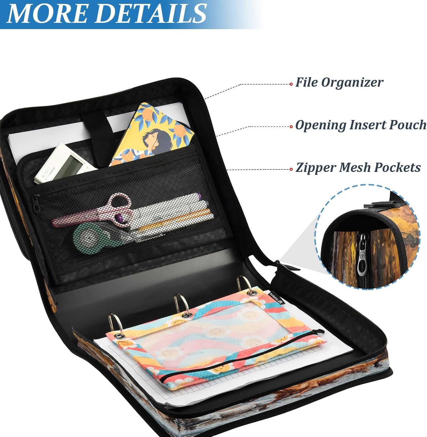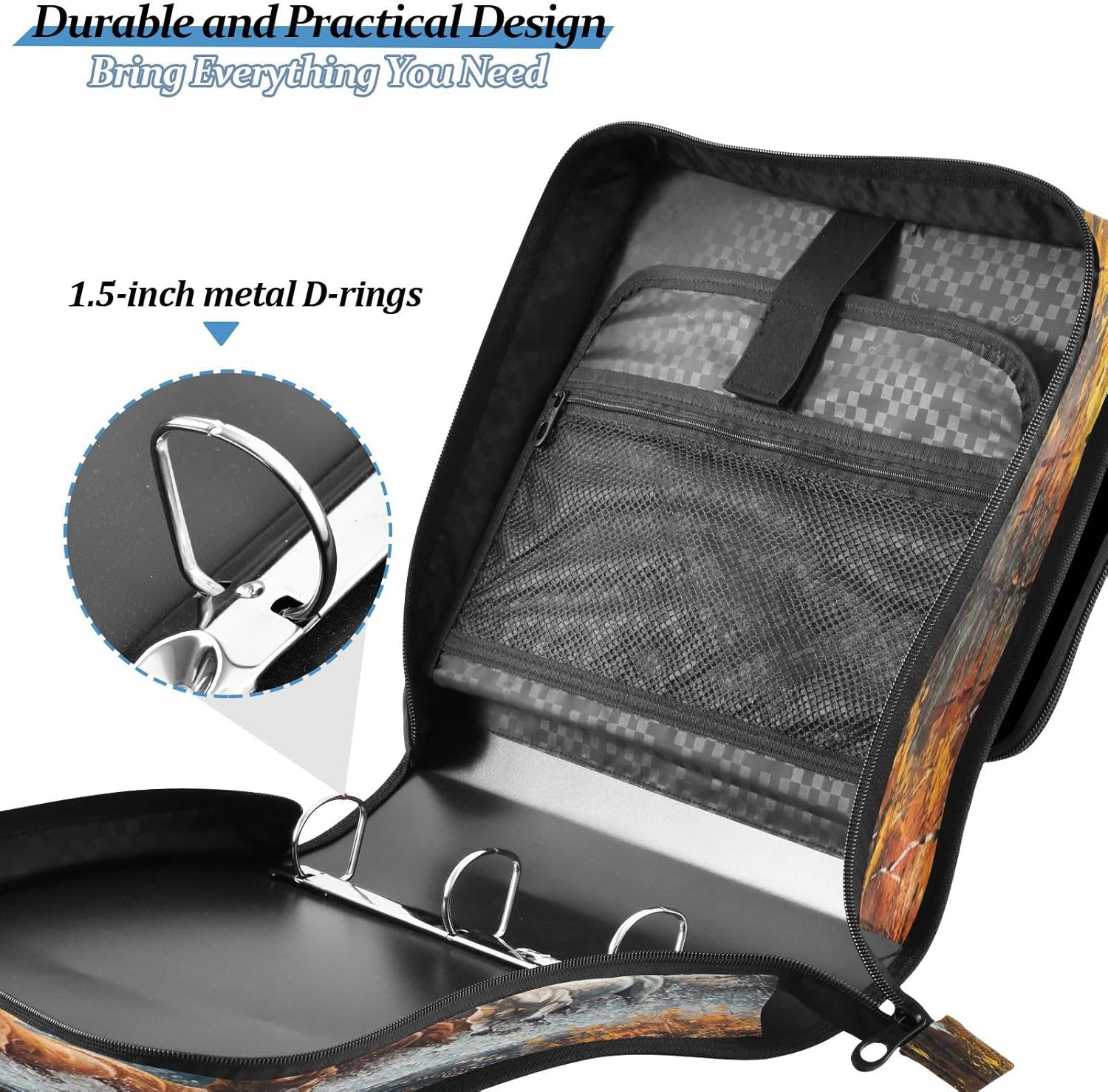 Why choose our Zipper Binder with Shoulder Strap and Handle? YETTASBIN Zipper Binder with Shoulder Strap and Handle very east to carry, perfectly provide complete storage organizer and store your important documents, even laptop! SPECIFICATIONS Material: water resistant polyester Size: 13.6 x 3.5 x 12.4 Inch/34.5 x 9 x 31.5 cm Application: Suitable for offices and school Clean Tips: wipe clean Print: outside full print(external print, internal fixed black) Package: 1Pack PRODUCT FEATURES -Waterproof material protect your itmen perfectly -There is a zipper organizer outside the main bag, you can put some handy notebook stationery and other items. -The main pocket zipper can be completely flat to unfold, one side of the 3-hole ring file iron clip, you can organize more documents, ring buckle height 1.5 inches -On the other side there are three organizer pockets, one fixed with an elastic band can put a whole stack of documents, a small insert pocket can put some special effects small cards, etc -The finally a mesh zipper pocket can put some loose stationery to avoid small things scattered. -The folder bag is spacious and has many storage compartments, which can be used by both adults and children. If you have any questions, please feel free to contact us!