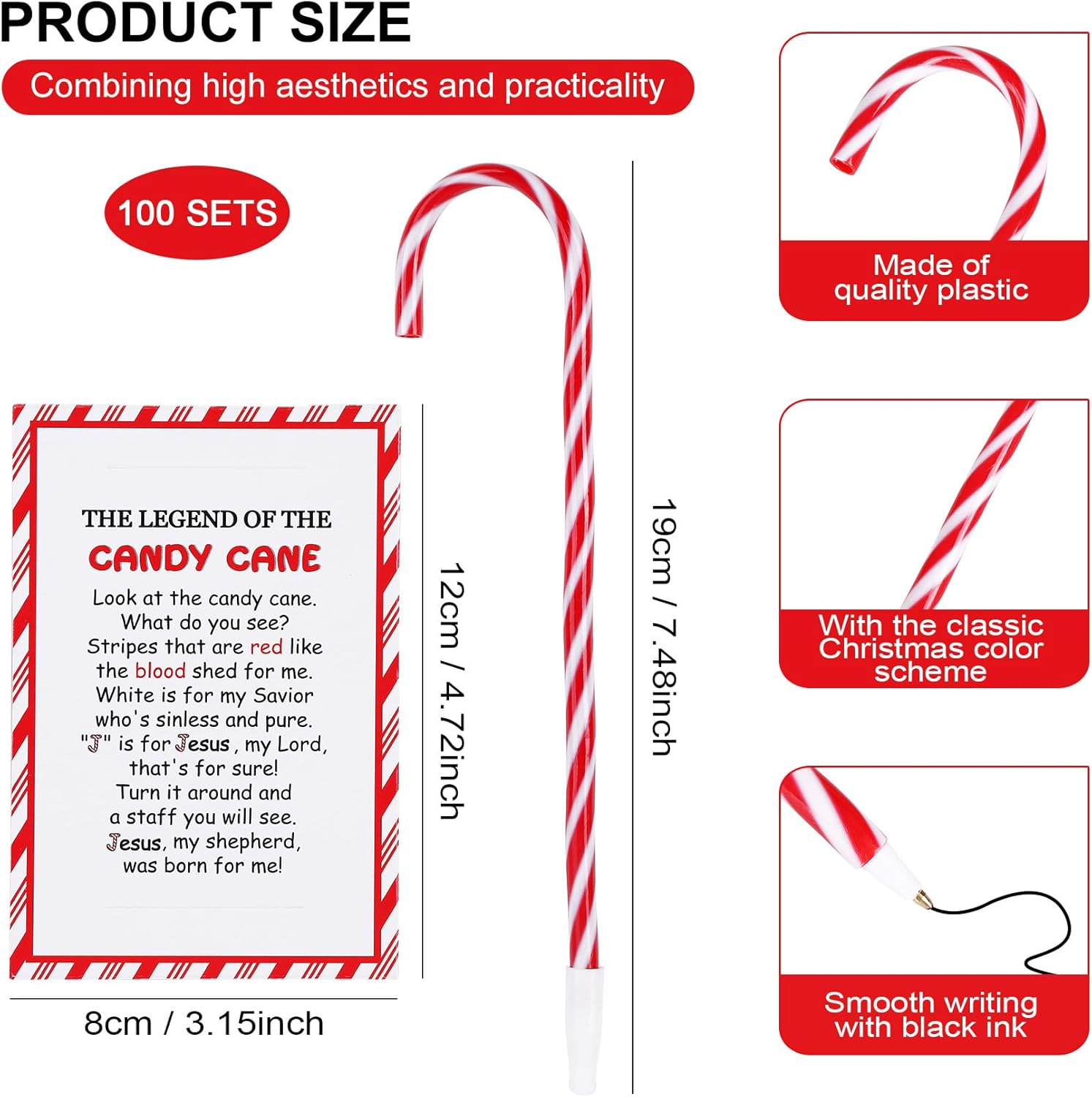100 Sets Christmas Candy Cane Pens Legend of Candy Cane Cards