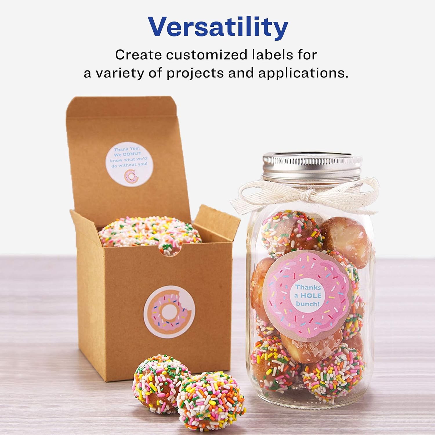 Avery Printable Round Labels with Sure Feed, 3/4" Diameter, Matte White, 800 Customizable Labels (4221)Add a special finishing touch to any product, gift, or personal creation with these professional looking Avery matte white labels. Our print-to-the-edge capability allows you to create bright, eye-catching, full bleed labels with sharp text and crisp images printed right to the edge of the round sticker label with no border or margin. Each sheet of labels features Sure Feed technology which helps deliver a more reliable feed through your printer to prevent print misalignments and paper jams. Our round printable stickers are quick and easy to apply with our patented Easy Peel label sheets with Pop-up Edge. Simply fold the sheet back to display the label edges for convenient and fast peeling that saves time and avoids label waste. A strong permanent adhesive is used to make sure that these small round labels stick and stay to paper, cardboard, plastic, glass, metal and more, without curling or falling off. Compatible with both laser and inkjet printers. Avery Design & Print makes it easy to create customized labels from your own home or business. The free browser-based software has everything you need to design pricing labels, mailing seals, planner stickers and product labels for bath salts, essential oils, beauty products and more. Try it out today on the Avery site.Avery Printable Round Labels with Sure Feed, 2" Diameter, Matte White, 300 Customizable Labels (22877)Add a special finishing touch to any product, gift, or personal creation with these professional looking Avery matte white labels. Our print-to-the-edge capability allows you to create bright, eye-catching, full bleed labels with sharp text and crisp images printed right to the edge of the round sticker label with no border or margin. Each sheet of labels features Sure Feed technology which helps deliver a more reliable feed through your printer to prevent print misalignments and paper jams. Our round printable stickers are quick and easy to apply with our patented Easy Peel label sheets with Pop-up Edge. Simply fold the sheet back to display the label edges for convenient and fast peeling that saves time and avoids label waste. A strong permanent adhesive is used to make sure that these round labels stick and stay to paper, cardboard, plastic, glass, metal and more, without curling or falling off. Compatible with both laser and inkjet printers. Avery Design & Print makes it easy to create customized labels from your own home or business. The free browser-based software has everything you need to design food & beverage labels, envelope seals, party favor stickers and packaging labels for bath salts, soaps, body care products and more. Try it out today and check out the Avery Design & Print software at our site.