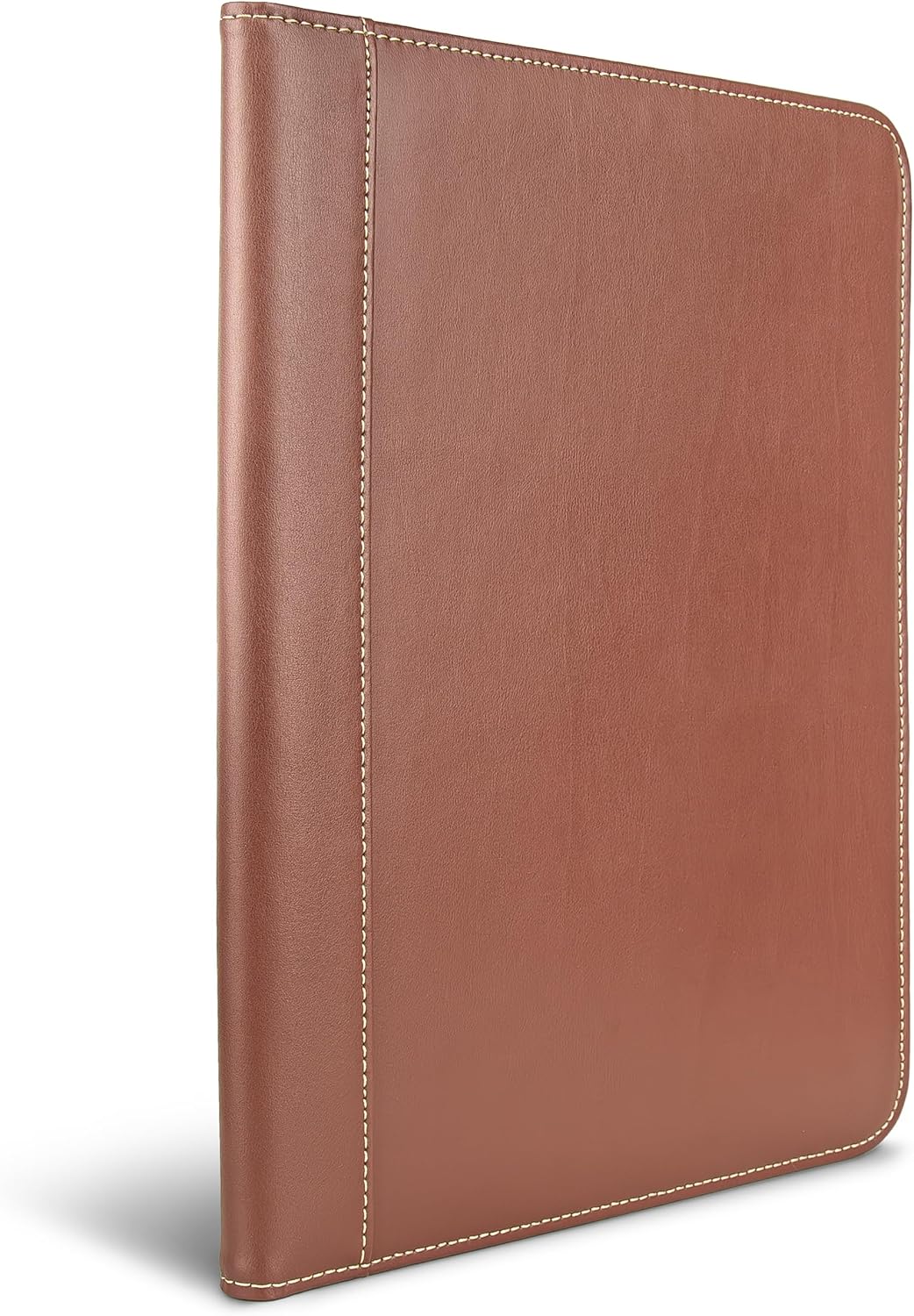 Samsill's leather folio organizer makes an indispensable tool for home and office use. This portfolio organizer features a minimalist design complete with soft, flexible bonded leather covers enhanced with sewn edges for added durability. A large document pocket allows you to keep loose notes, resumes, business proposals, and other documents safe and neatly organized. The interior pockets accommodate business and credit cards, ID cards, flash drives, etc. Our business folder also includes a convenient pen loop designed to ensure that you're always ready to take down important information. The 8.5 by 11-inch lined writing pad included behind the right cover of our leather file folder allows you to quickly take notes while in a meeting, classroom, or any other setting where you need to jot down important information right away. The possibilities are endless!