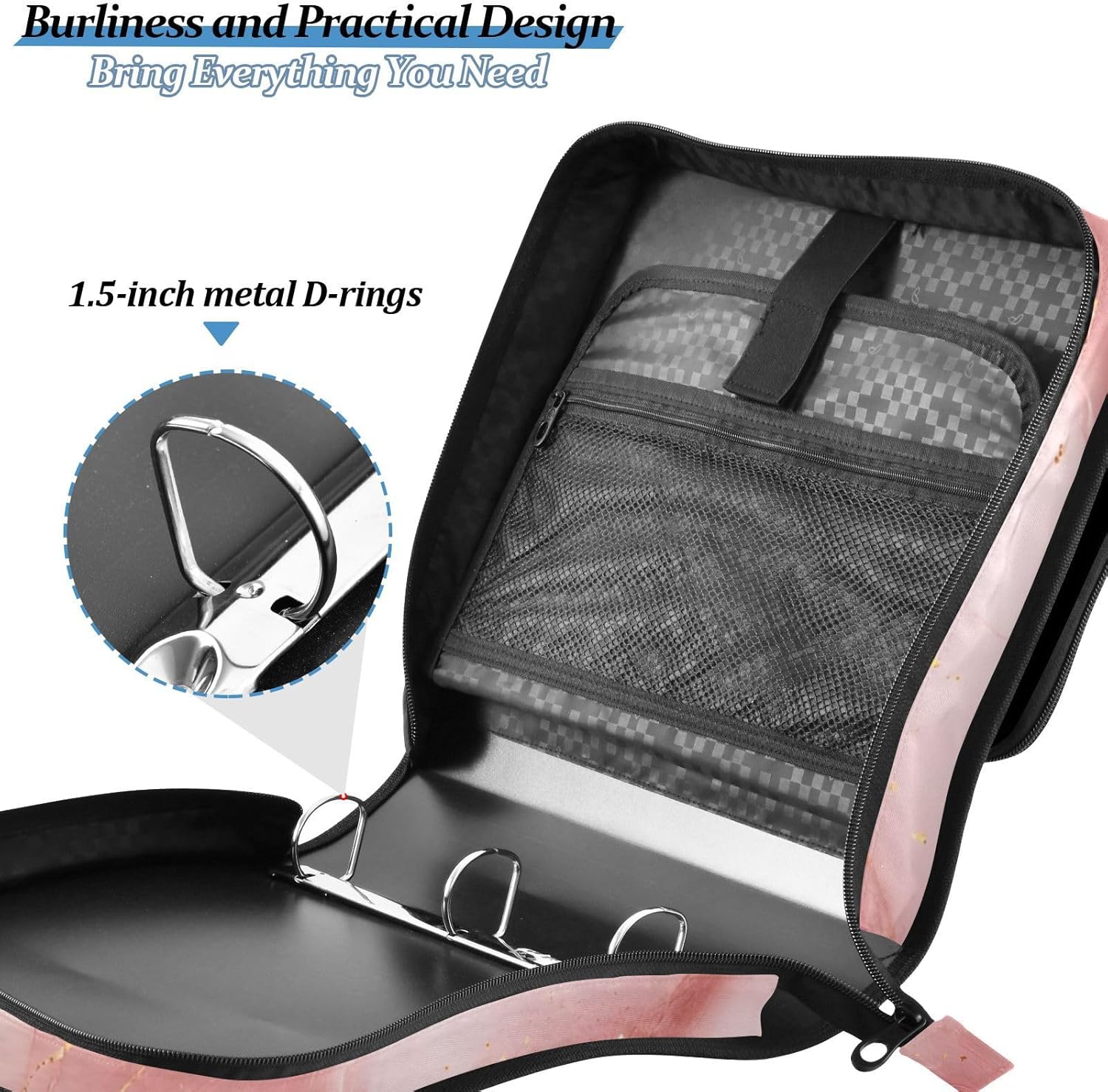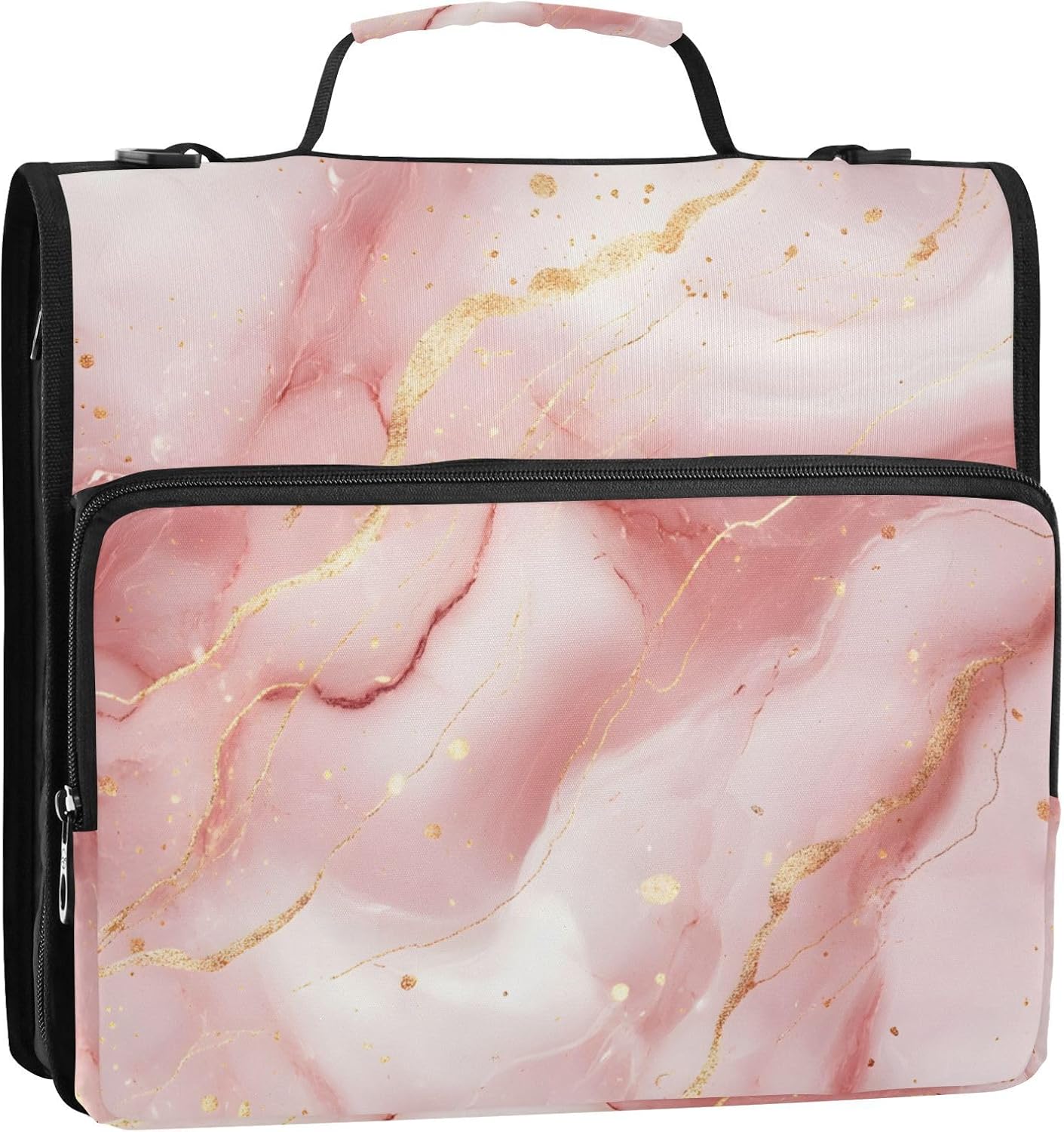 Pink Marble Zipper Binder 3 Ring Binder with Shoulder Strap 500 Sheet Capacity Storage Organizer Trapper Keeper File Folder