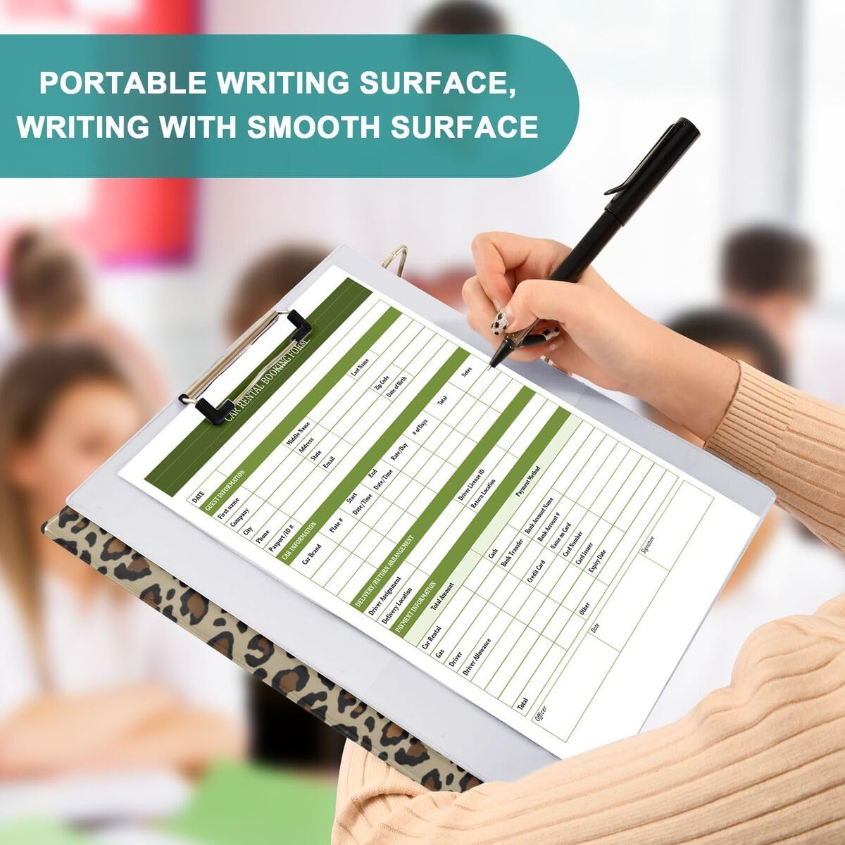 Size:12.4 x 10.63 x 2.36 inchesMaterial:PVCDesign:There is a metal clip on the left that can hold the paper in place, making it a writing board and storing paper.Function: The built-in ring clamp on the right side can store 200 files, making it easy to open and close, easier to store files.Transparent PVC pocket patch at the bottom for storing scattered photos, receipts, etc.It offers a more organized and compact storage solution, especially when dealing with varying paper quantities.The Fashion and colorful designs bring additional flare to any environment.