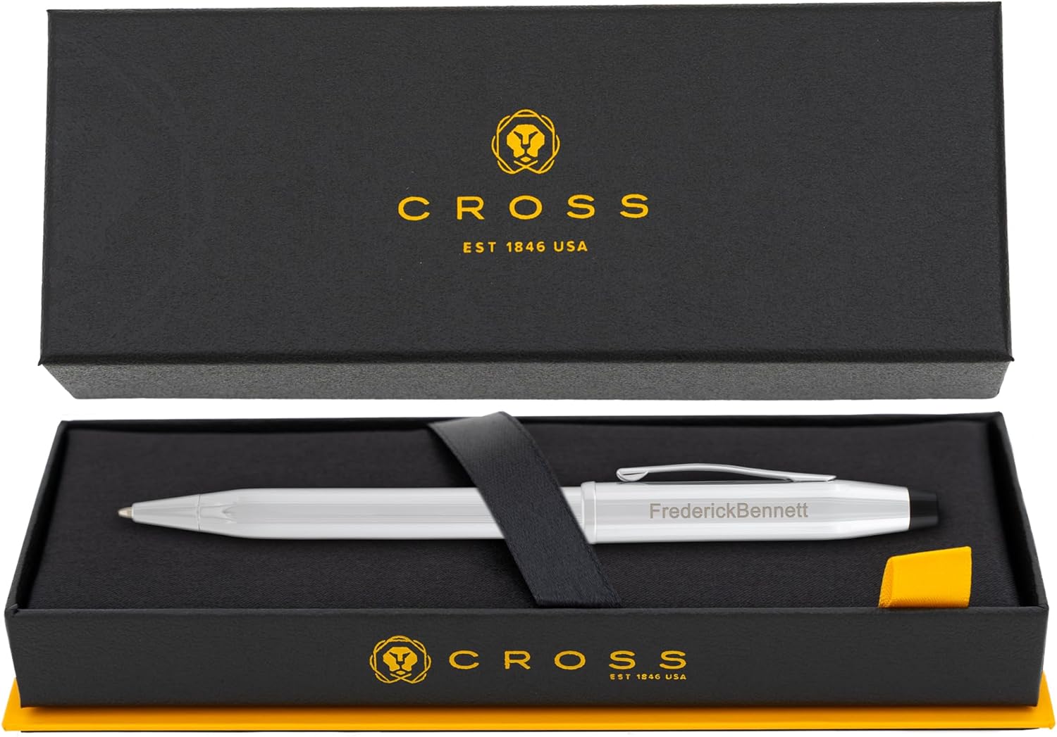 | Additional Features | Black lacquer barrel with 23K gold-plated trim and appointments, Cross medium point black ink refill included, Custom engraving up to 30 characters in gold tone on cap, Official Cross gift box included, Twist-action ballpoint mechanism |