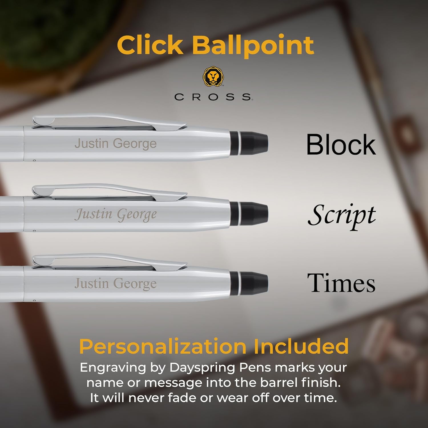 | Additional Features | Arrives in gift box, Click-action ballpoint pen, Custom engraving included, Medium point 1.0mm black ink, Slender barrel thin and lightweight |