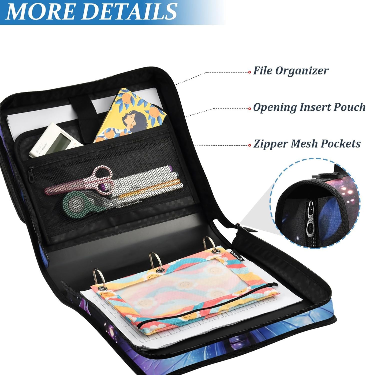 Size: 13.6 x 3.5 x 12.4 Inch/34.5 x 9 x 31.5 cmMaterial: water resistant polyester (tear-resistant, sturdy, waterproof, dust-proof)Package: 1 x zipper binderProduct Features:Waterproof material protect your itmen perfectlyBinder with Zipper and Strap - Soft and thick shoulder pads can reduce the pressure of heavy objects on the shoulders.Expandable File Folder - The main compartment of the binder bag can unfolds 180° providing easy access to all your documents.3 Inch O-Ring Binder - 1.5" 3-ring mechanism (holds 300+ sheets) on one side.Three specialized pockets on the other: elastic-strap paper stacker, card slip pocket, and mesh zip pouch for loose itemsPersonalized binder zipper with external zippered compartment stores pens, sticky notes, or earbuds for grab-and-go convenience. The overall look of the binder and gives it a stylish and elegant touch, great gift choice for your families, friends or yourself.If you have any questions, please feel free to contact us!