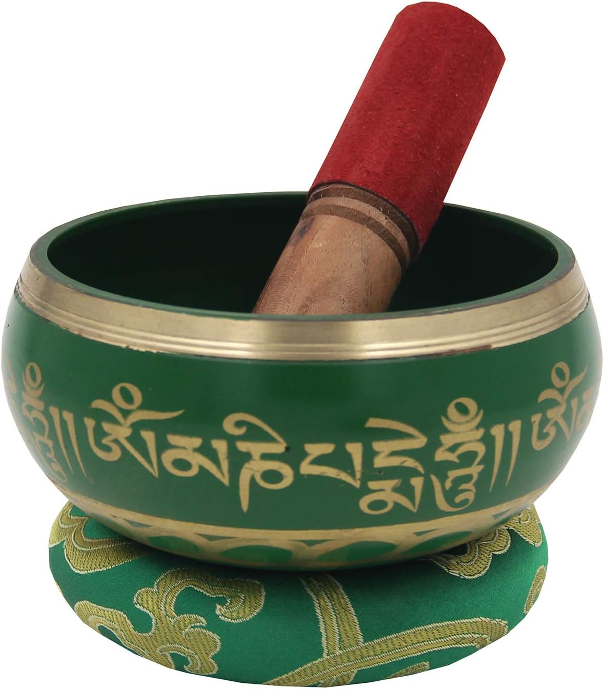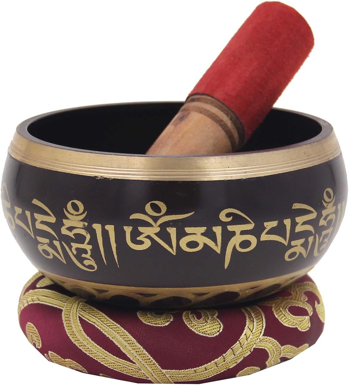 • Price Includes Hand Etched and Painted Singing Bowl, 2 in 1 Wooden Mallet with Suede and Hand Sewn Donut shape Silk Cushion (Cushion Color May Differ)