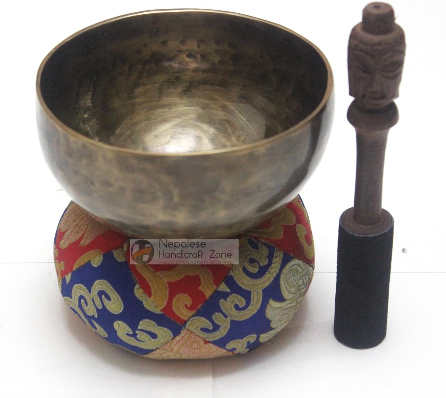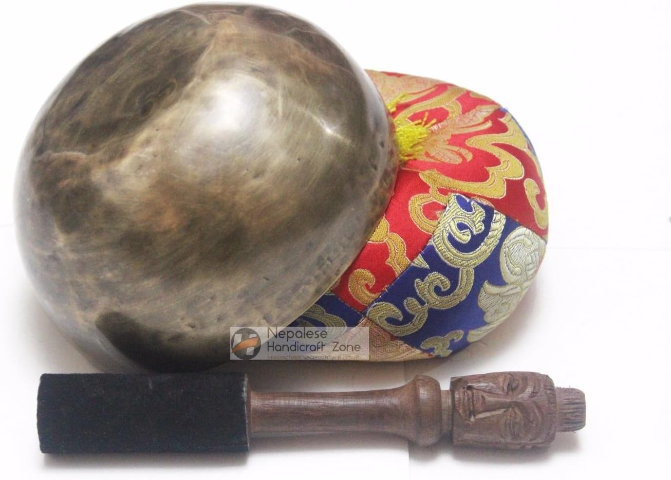 5.5 Inch Tibetan High quality Meditation Singing Bowl: - This 5.5 Inch Tibetan High quality Meditation Singing Bowl is made from seven metals, including copper and silver. This singing bowl was hammered by hand. This Tibetan Buddhist hand-hammered singing bowl was handmade in Nepal. Classic bronze patina darker speckling and swirling. This bowl is literally covered in authentic hand hammered markings. This PREMIUM bowl sings VERY easily. Great sustain will last and last. Full Middle range tone with a sweet constant high hum. VERY distinct charm. This listing is for an old, genuinely handmade, authentic singing bowl. A free mallet and singing bowl cushion (color, design and color may vary) are included with this bowl. Excellent singer; excellent and peaceful humming sound. The hosted sound does no justice to the bowl. Suitable for any professional use including sound recording, sound projects, yoga, reiki, and more. This singing bowl comes with a striker (aka mallet, puja). ITEM DESCRIPTION: * Weight of singing bowl : 550gms * Width of singing bowl(Diameter) : 5.5” inch . * Height of singing bowl : 3” inch * Thickness of singing bowl : 3mm. * Material of singing bowl : Brass and 7 auspicious metals. * Items of this listing : Bowl, striker and cushion. * Total weight of all items : 700gms