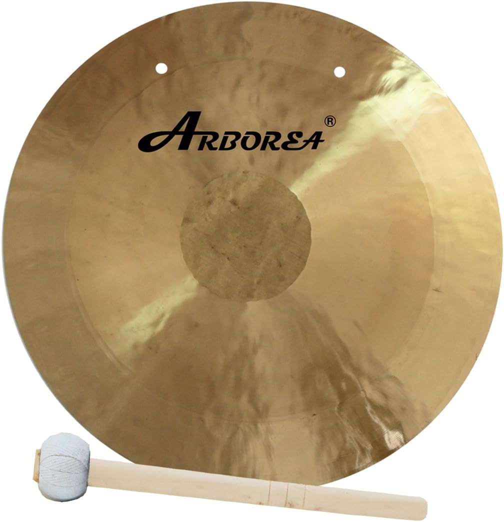 Arborea cymbals and gongs are the oldest in use for thousands of years, the traditional formula and manual production method, with the most advanced technology and equipment, perfectly create the harmony of ancient and modern.Our most professional brass instruments such as ARBOREA cymbals and gongs have sold well all over the world in recent years and are far ahead of the brass music industry. Our company continues to develop products that adapt to different musicians' styles, and only by experiencing it can you appreciate its timbre as unrestrained, wild, powerful and expressive as its brand, making you truly dive into the temple of music.Small gongl Material: quality bronze alloy>include:mini wind gong+ C-gong stand+free gong malletWhat is this gong made of?This small gong is made of high-quality bronze alloy by hand beating, the sound is very good.Can this gong be used for sound therapy and meditation?This small gong can be used as a sound therapy gong and meditation gong, the larger the size, the better the sound.