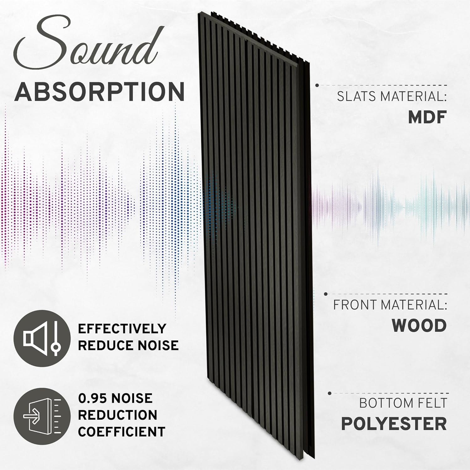 Introducing Dogberry Collections Acoustic Slat Wood Wall Panels - Your Stylish Solution to Noise Reduction! Dogberry, Acoustic, Wood, Wall, Panels, Wood, Shiplap,Paneling, Panel, Interior, Decor, Slat, Paneles, Decorativos, para Pared Slats, Paredes, Falsa, Cuartos, Wrap, Fluted, Sheets, Beadboard, Fake, Wooden Are you tired of dealing with unwanted echoes and background noise in your space? Look no further! Dogberry Collections Acoustic Slat Wood Wall Panels are here to transform your surroundings into a haven of tranquility and style. Whether it's a bustling home office, a music studio, a conference room, a home theater, or even an instrument practice room, these panels are your ideal acoustic companions. Key Features: Slat Features: Our Acoustic Slat Wood Wall Panels are meticulously designed to help reduce echoes and eliminate background noise. They're not just about functionality; these panels add a touch of elegance to any room. With their timeless charm and exceptional sound-absorbing capabilities, they're perfect for enhancing the acoustics in your space. What's in the Box: Each package includes (2) slat wall panels, each measuring 94.5" x 12.8" x 0.82". That's a total coverage area of 94.5" x 25.6" for your convenience. These panels consist of 8 solid MDF slats with a genuine wood veneer finish, backed by black polyester acoustic felt. We're proud to offer you the highest quality panel coverage on the market. Modern Home Decor: Our Acoustic Wood Slat Wall Panels effortlessly blend modern and innovative design, making them a versatile addition to any décor style. Whether your space embodies a Modern Farmhouse, Craftsman, Contemporary, or another style, these panels complement them beautifully. The genuine wood veneer over MDF slats not only looks stunning but also enhances sound absorption. Easy Installation: Are you a DIY enthusiast? You're in luck! Dogberry's "easy overlap" technology allows you to seamlessly join these panels together. The installation is a breeze - all you need are screws or glue to create a noise reduction effect that's nothing short of magical. You can easily customize the panel size by cutting to your desired dimensions, eliminating excess waste. Transform your space with the perfect combination of style and functionality. Dogberry Collections Acoustic Slat Wood Wall Panels are your gateway to a quieter, more elegant environment. Don't let unwanted noise disrupt your peace; order your panels today and experience the difference. Elevate your space with the beauty of acoustics!