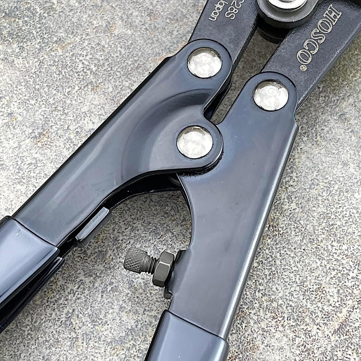 The Hosco TL-FC28S Stainless Steel Fret Cutter is a premium-quality tool designed specifically for clean, flat fret cutting – even on tough stainless steel frets. Its special cutting edges, made from high-carbon steel, provide exceptional durability, delivering years of precise use without losing sharpness. What sets this cutter apart is its safety-focused design. It includes a T-shaped lock system with an oblong cutout in the center that helps prevent accidental opening or unexpected damage to the guitar neck. Simply slide the lock upwards to engage or downwards to release. For additional assurance of quality, every TL-FC28S is factory-tested before shipping. The whitish mark on the blade is a proof-of-cut and not a sign of previous use. Comfort is also a priority. The tool features rubberized handles that enhance grip, provide greater leverage, and help reduce hand fatigue during extended use. The cutter measures 8 1/4" (210mm) in total length and has a jaw width of 19/32" (16mm). Perfect for luthiers, guitar repair professionals, and anyone working with modern fretwire materials, especially stainless steel.