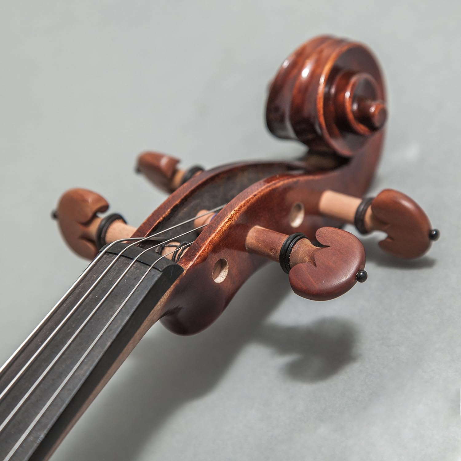 Fully hand-carved spruce top and aged flamed maple back, side and scrollEbony fingerboard, jujube wood pegs, chinrest, tailpiece with high quality string set.Hand oil varnish finished with high flamed maple back, unique antique lookIt comes complete with a luxurious brazilwood Fully-line bow, a premium oblong violin case and a high quality rosin.Final assembly and setup performed by Sky Music’ professional luthiers in California