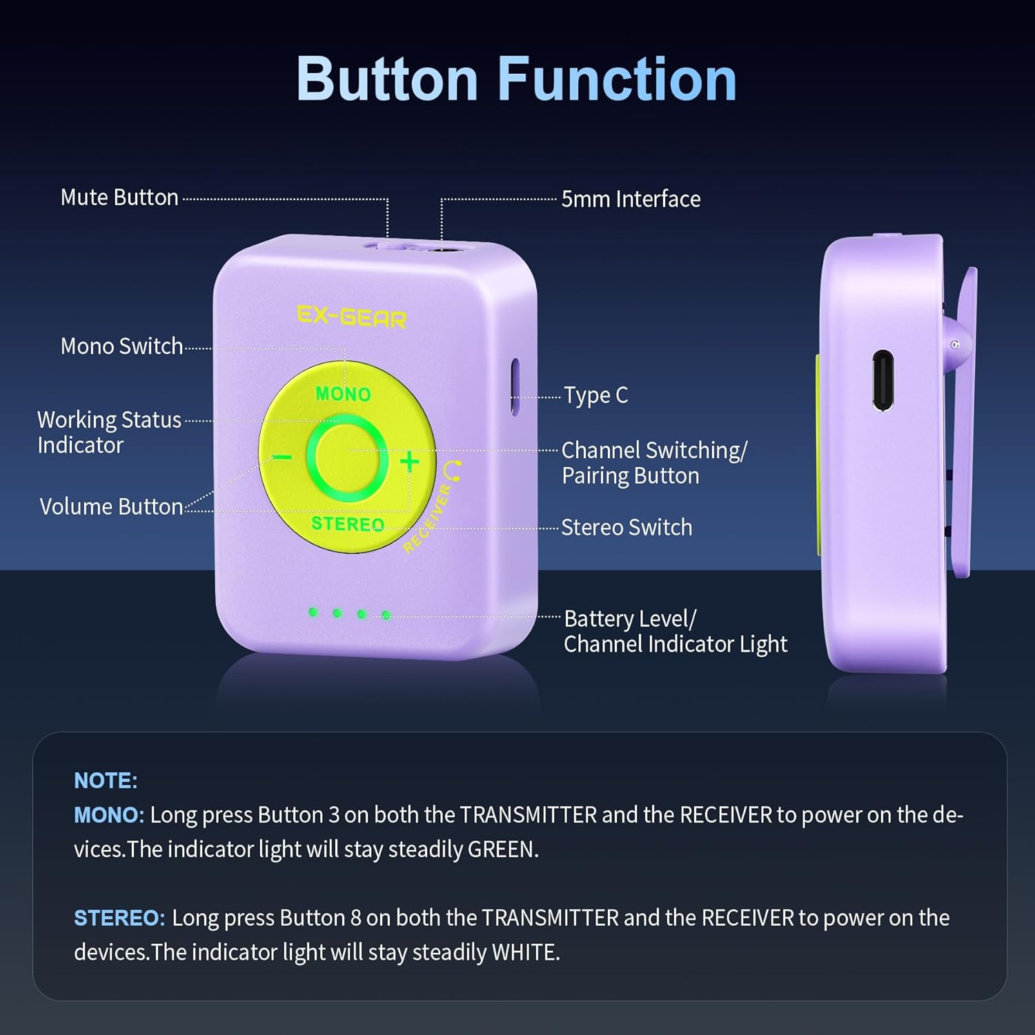 Give your live sound the pro treatment. The EX GEAR 5.8GHz Wireless In-Ear Monitor System was engineered for performers who need dependable, accurate monitoring without the clutter of floor wedges or long cable runs. Using a robust 5.8GHz digital link, the system delivers clean stereo audio and the low latency performers require to stay perfectly in time — whether you’re in a recording studio, leading worship, DJing a set, or playing a club.Setup is fast and painless: clip the compact transmitter to a mic stand or belt, power up the lightweight receivers, and the system’s auto-pairing feature gets everyone connected in seconds. Each receiver gives artists private, direct monitoring of the mix — reducing stage bleed, improving concentration, and letting performers hear themselves and the band exactly how they should. Built for the road, the hardware balances durability with comfort so you can move freely while staying confident that your monitoring won’t fail you mid-song.Included with the system are the transmitter and clip-on receiver(s), charging/power management features, and easy-to-follow controls for volume and monitoring. Whether you’re a solo performer, a multi-piece band, or a worship team, EX GEAR helps you sound better, perform better, and travel lighter.
