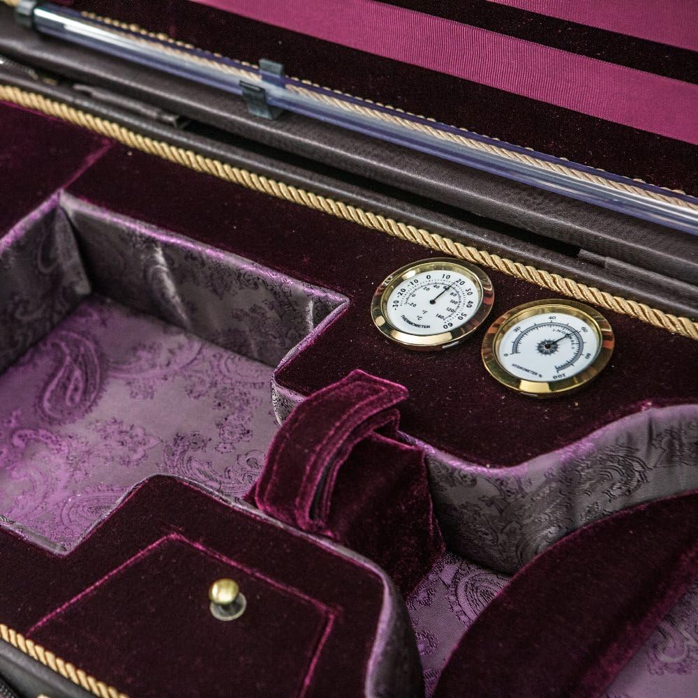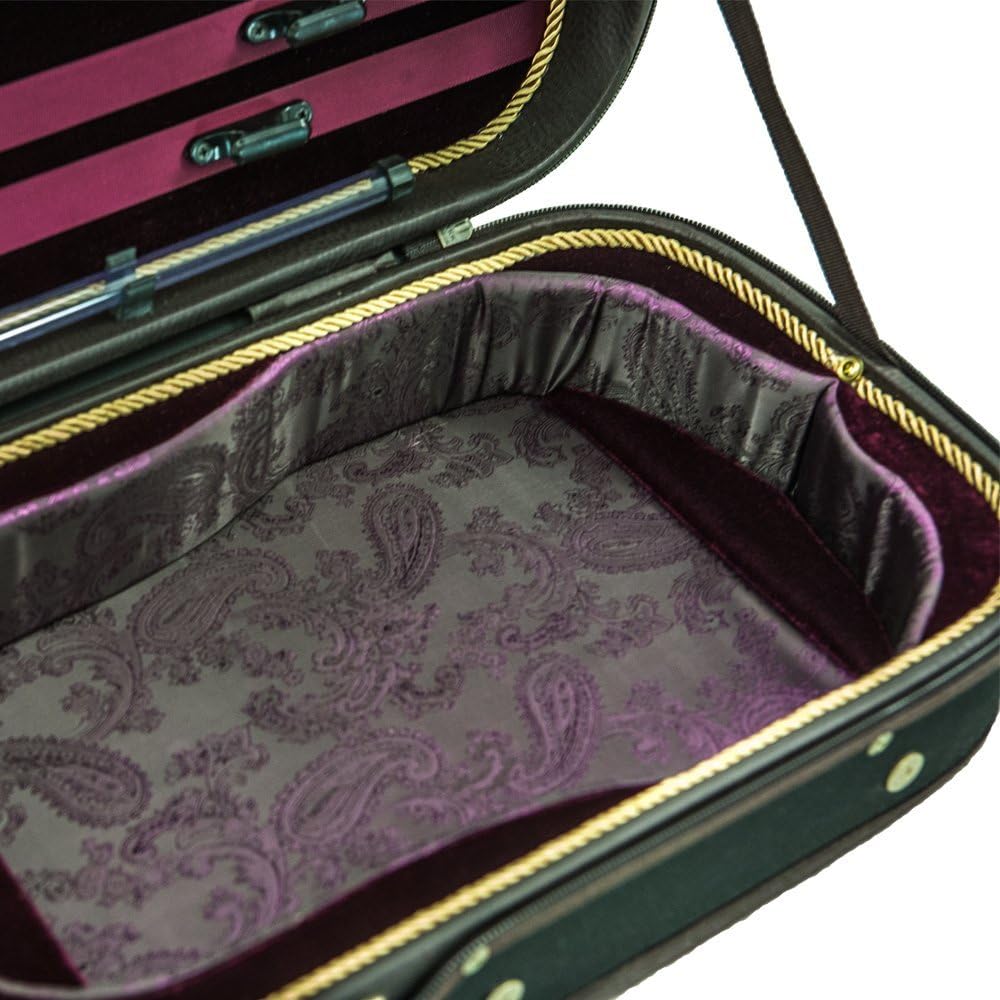 ● Brand New luxurious euro-style oblong violin case, desirable features yet it is lightweight and durable. ● Rain proof canvas cloth outside with sturdy solid wood construction, beautiful luxurious velvet lining inside. And the neck restraint and tailpiece protector. ● Case comes with a matching blanket. Four (4) bow holders and one clear tube to hold violin strings. ● Features hygrometer, large music sheet pocket on top this case. ● Two ample size storage compartments for rosin, shoulder rest, shoulder straps and more. ● Hand carry handles (side or top) and shoulder straps are provided. ● Quality material used throughout the case with elegant velvet interior.