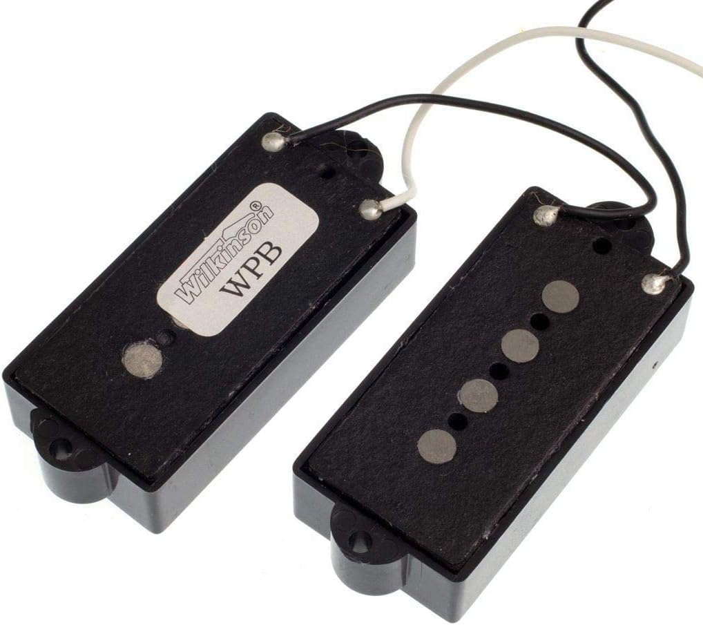 NEW Wilkinson WPB AlNiCo V 'PB' Bass Pickups (screws & springs included) Color:Black Package Included: MWPB pickup adjustment screws & springs are included. Condition: Brand New Spec: Dimension: 57.5 mm (L) x 28 mm (W) x 19.5 mm (H-including magnet) (Not including Screw socket) Screw Hole:62 mm Pole Spacing: 28.6 mm Part. No.: MWPB These high specification pickups are from Wilkinsons premium range. They utlilise Alnico V Polepiece magnets for greater note articulation and transparency, and offer up a truly authentic vintage tone that you would expect from a high-end instrument. Other premium features include; Plain Enamel Wire; Fibre Bobbin, & Distinctive Chrome Logo Providing classic 'hum-cancelling' tones, with a warm, round bottom-end, and a thumping mid-range. The Alnico V Polepiece magnets give you a more dynamic response while allowing your guitars natural character to ring through. The price-point, as ever, disguises the true quality of these superb professional level pickups. Resistance: approx 8.6k