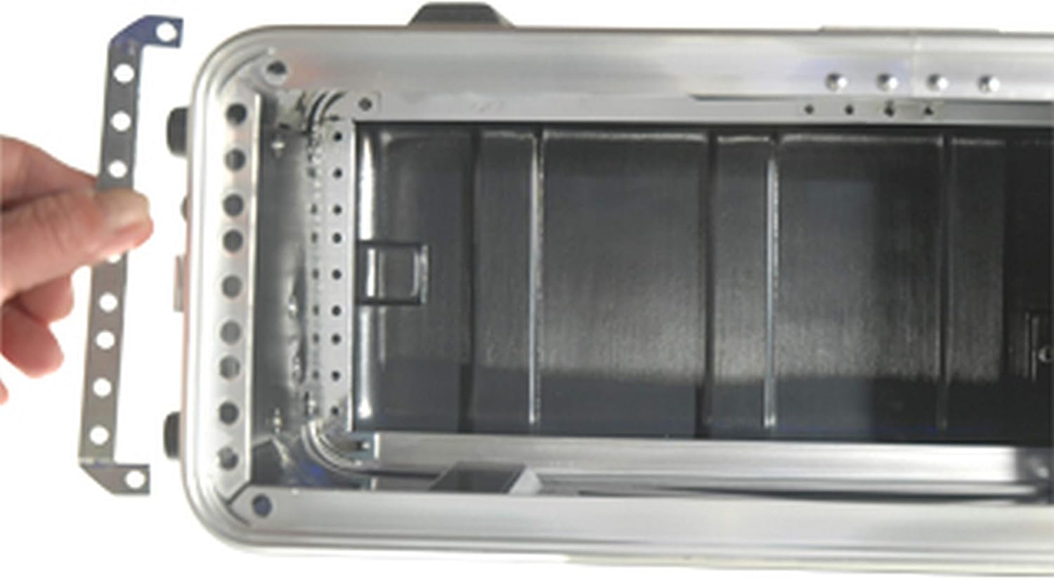 The ABS-WR0308 three space rack has an 8.25-inch rackable depth space between the front and rear rack rail. The front rails are inset .25". There is a total of 10.5" of rackable depth from the front rails to the inside of the rear cover, and 12.25" depth from inside front cover to inside rear cover.