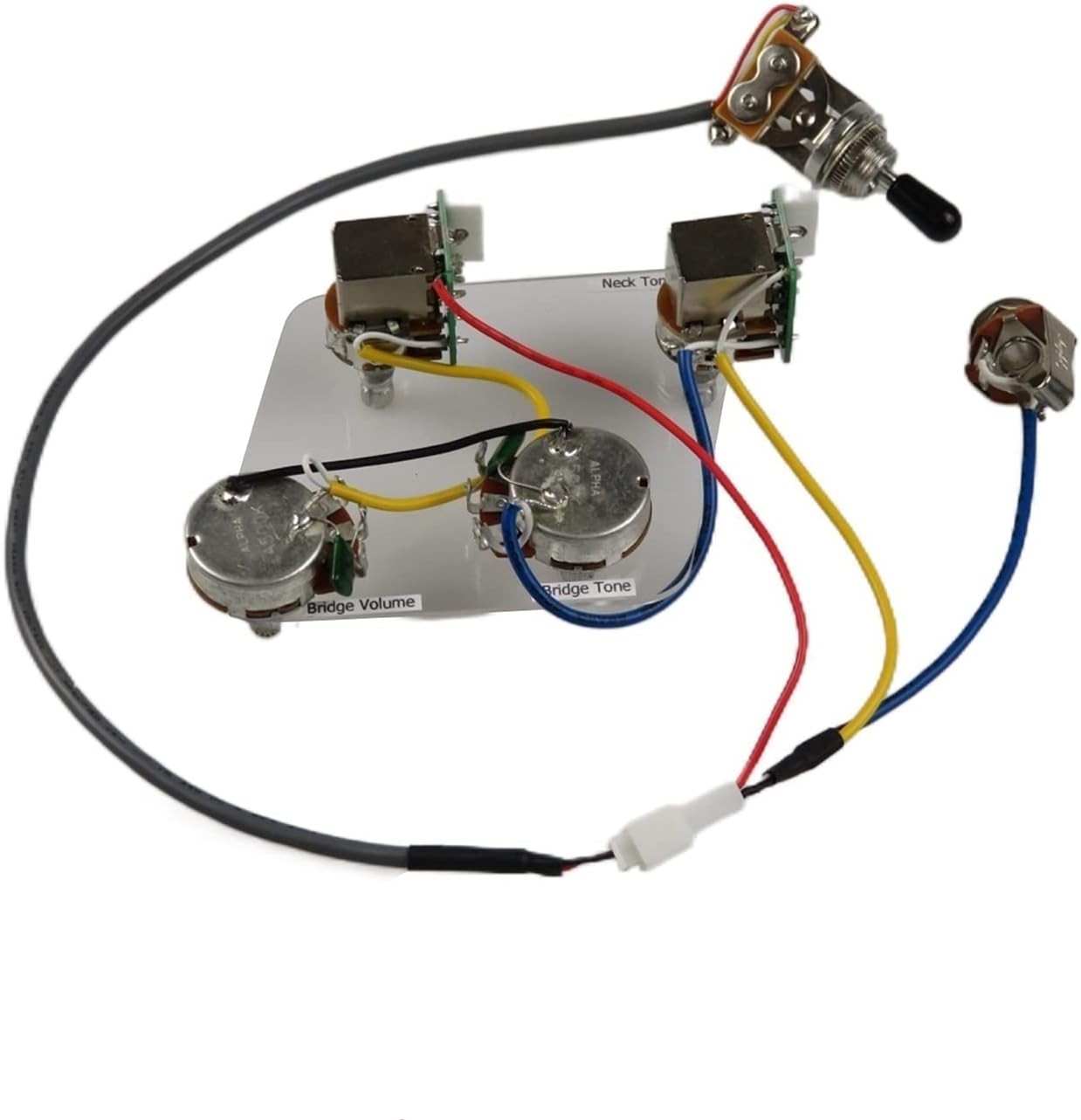 Product Description new and packaged electric guitar pickup pro wiring harness pickups are equipped with Alnico magnetsthat produce a rich, warm sound with a sparkling high-end and a solid low-end. There are a variety of styles and colors to choose from, you can upgrade and replace your guitar as you like . 1 pair pickup is ideally suited for the BRIDGE and NECK positions. Compatible with LP guitars Neck Pickups Resistance : 7.5K Hole distance 50mm Bridge Pickups Resistance : 8.6K Hole distance 52mm 4 Pcs Alpha Pot 2pcs B500K Push/Pull ,2pcs A500K