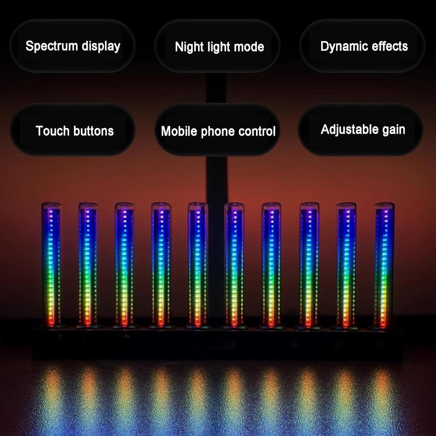 Specifications Product name: Sound spectrum lamp Lamp type: 250 full-color LED lamp beads Power interface: Type-C power supply Input voltage: DC 5V power supply Product material: Base: black walnut/aluminum alloy Dustproof: quartz glass Product size: 18cm*2cm*7cm Product net weight: <1kg Packing list Sound spectrum lamp*1