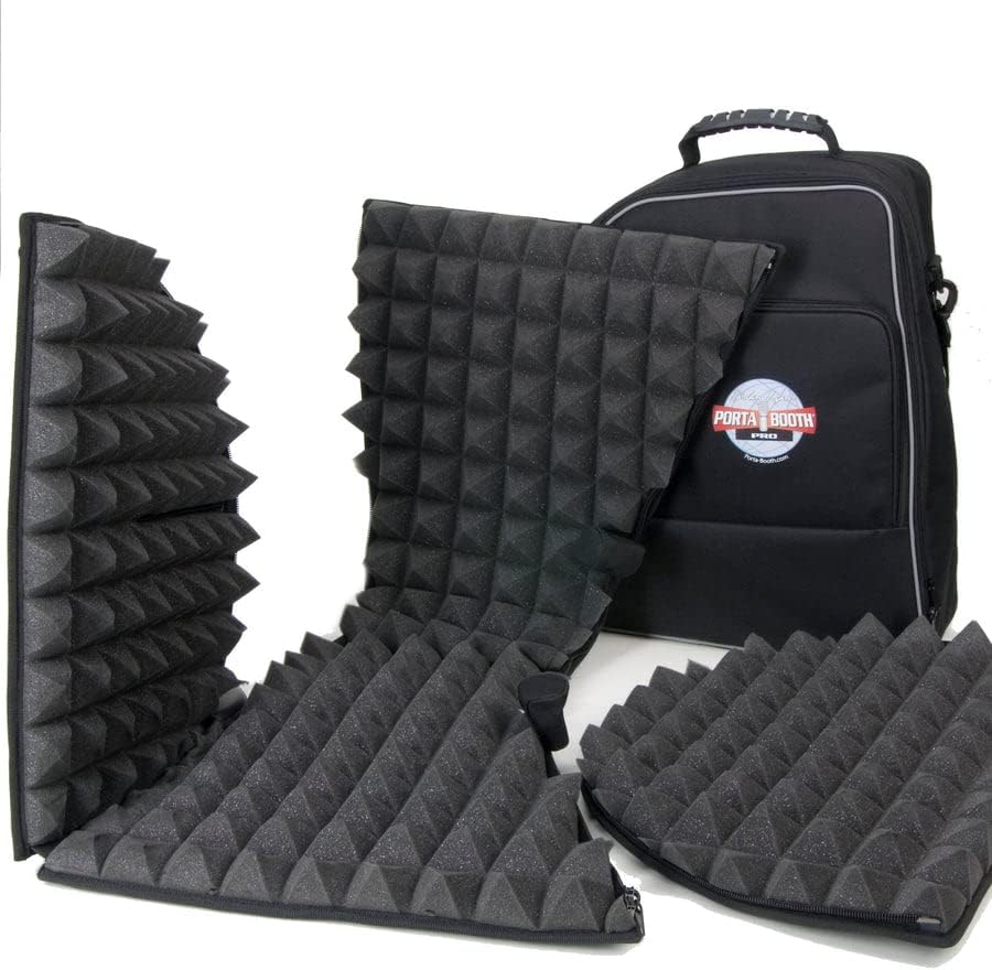 The ability to record professional quality audio at home & on the road is a requisite tool of the voice-over trade. If money and space are no object building or buying a human sized sound booth is ideal, but impractical and unaffordable for most performers. And when you are on-the-road hauling along moving blankets or "portable" booths that weigh 50 to several hundred pounds is equally unacceptable. But performers can capture great audio even in acoustically untreated spaces with my Porta-Booth Pro. Your microphone hears the sound of a human sized sound booth at a fraction of the size and cost. The Pro accommodates large and long microphones, lengthy scripts and e-reading devices. Lined with Auralex Studiofoam the Pro is the best-selling portable recording booth worldwide. It's a professional quality sound studio that assembles in less than a minute. Auralex Studiofoam, the first choice of recording studios worldwide, is the ingredient that makes our Porta-Booths sound so good! Specifications: Assembled: 20" High x 21" Wide x 16" Deep Folded: 21" High x 21" Wide by 7" Deep 120% larger than our Porta-Booth Plus Weight: Seven Pounds