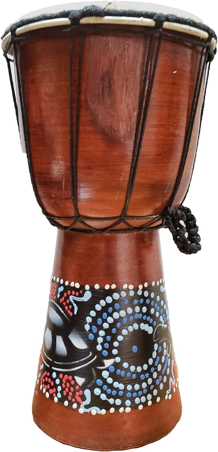 Djembe Drum Hand Painted Multicolor Dots With Unique Random Patterns Turtle Accent Bongo African Inspired Music Beginners For Kids And Adults Also An Awesome Gifting Idea 12" Tall x 6 Inch top