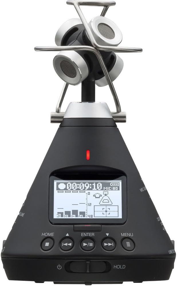 The Zoom H3-VR Handy Audio Recorder offers unmatched 360° audio capture with its built-in Ambisonics mic array, perfect for VR, AR, and various audio production applications. Its four-microphone setup supports Ambisonics, stereo binaural, and standard stereo modes, providing high-fidelity sound for music, film, and gaming. Real-time monitoring and onboard Ambisonics A-to-B conversion streamline workflows, eliminating the need for external processing. User-friendly features like a single-knob gain control, LCD screen, and accessible transport/menu buttons make operation simple. The integrated 6-axis motion sensor ensures precise audio-to-video alignment, while dual 3.5mm outputs allow simultaneous headphone and camera connections. Remote control is possible via the iOS H3-VR Control app and optional Bluetooth adapter. The device can be powered by two AA batteries or USB, offering up to 24 hours of use. Its compact design, with a 1/4"-20 threaded hole for tripod attachment, foam windscreen, and dual mount adapter, makes it versatile and reliable for capturing live music, soundscapes, or immersive VR audio.Bundle Items Include:Zoom H3-VR Handy Audio Recorder with Built-In Ambisonics Mic Array4x AA Batteries with ChargerMemory Card microSDXC Extreme Pro 64GBCleaning kitStrapsP-Bank Battery 10000 MAH 12 Inch Flexible Vlogging Tripod Travel BagDiginerds USB Card Reader, SD/microSD