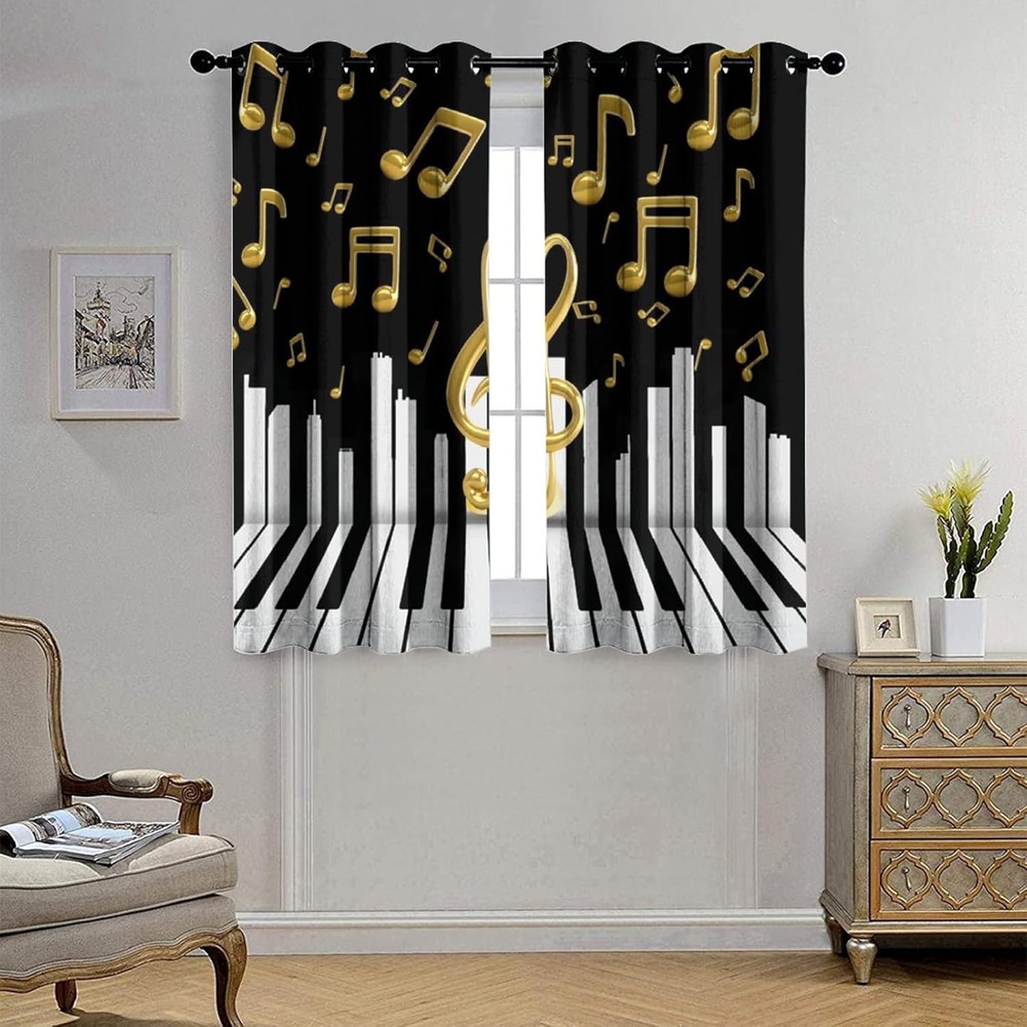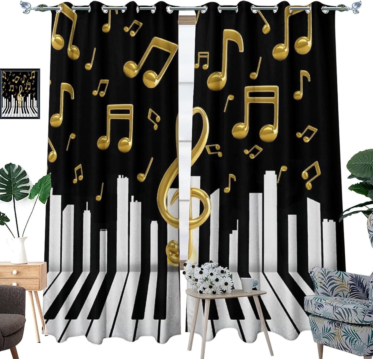 This Abstract Music Curtains can block out 85%-99% sunlight and UV ray ( Darker colors work better), perfect for late sleepers and afternoon naps. Our energy saving curtains insulate against summer heat and winter chill to balance your room temperature, reduce outside noise .Kazynee Custom Design Shop:Our curtains Immerse your home in splashes of color.The 3d print curtains give off a realistic tint in the whole room and turns the room into a magical colorful fairy-scape.Premium Material:Adopt high-quality 100% polyester fabric.Three-layer woven fabric, high-precision black silk shading partition,density of the middle black silk layer is double that of ordinary fabrics, greatly improve the shading effect.HD Printing Technology:High resolution pictures bring a perfect visual experience to your life.Industry-leading HD printing technology, No strange odor. Toxic free and safe.Easy Cleaning:This blackout curtains machine washable, gently cycle, no bleach, tumble dry low, and iron at low temperature settings.Kindly Remind:- Don't use sharp things scratching curtains.- For proper fullness panels should measure 1.5-2 times the width of your window.- 24 Hours customer support.- As different computers display colors differently, the color of the actual item may vary slightly from the above images.