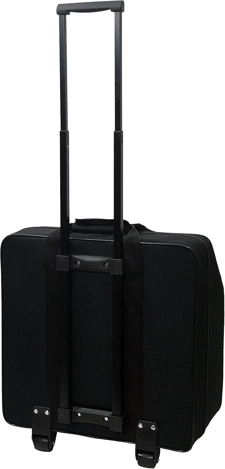 SofiaMari 32 Key 32 Bass Piano Accordion. Keyboard 32 Notes F-C, Four Bass Rows, Eight notes each, Fundamental Bass, Major, Minor and 7th Chords. New, Fitted NAC Roll Away Trolly Case Designed for Maximum Protection, featuring a Telescoping Handle. New, 2.5" Wide Leather Straps with Harness, Designed for Maximum playing comfort. New grill with improved switch plate design.