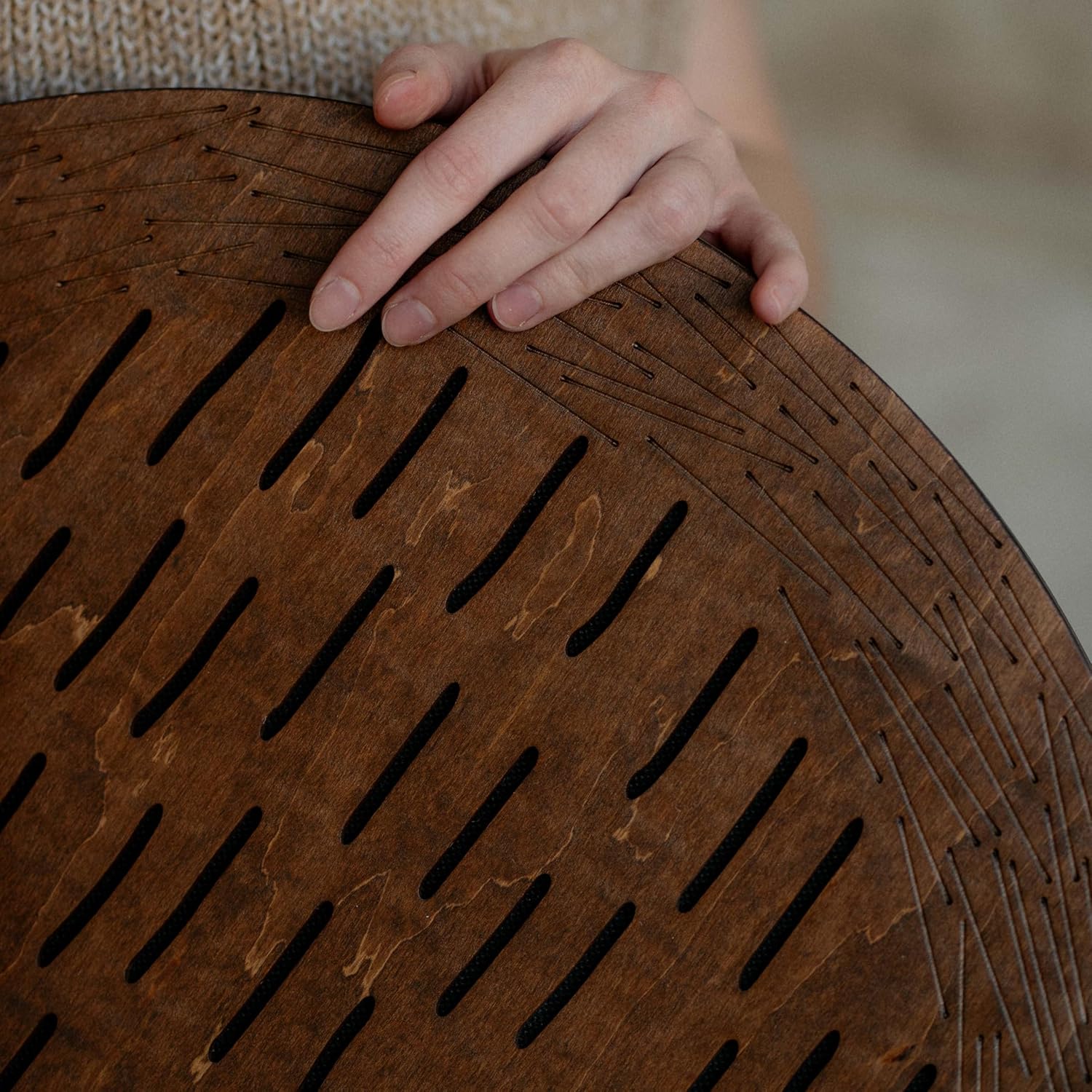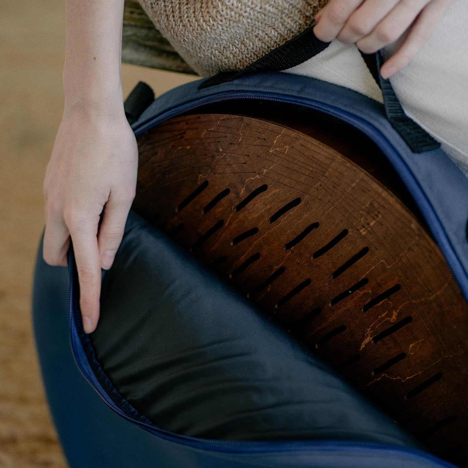 Nazar Drums Water-Fall Disc is a Wooden Ocean Drum — a handmade sound healing instrument crafted to recreate realistic ocean waves / waterfall / rain-like ambience. 19.5" (50 cm) SIZE — DEEPER SOUND The larger size gives a deeper, more immersive wave sound. The water ambience can last up to ~60 seconds per slow rotation, and you control intensity by angle and speed. No musical skills needed. MATERIALS Engineered wood frame Decorative fabric elements Steel pellets inside THIS VARIATION INCLUDES Water-Fall Disc + soft protective bag.