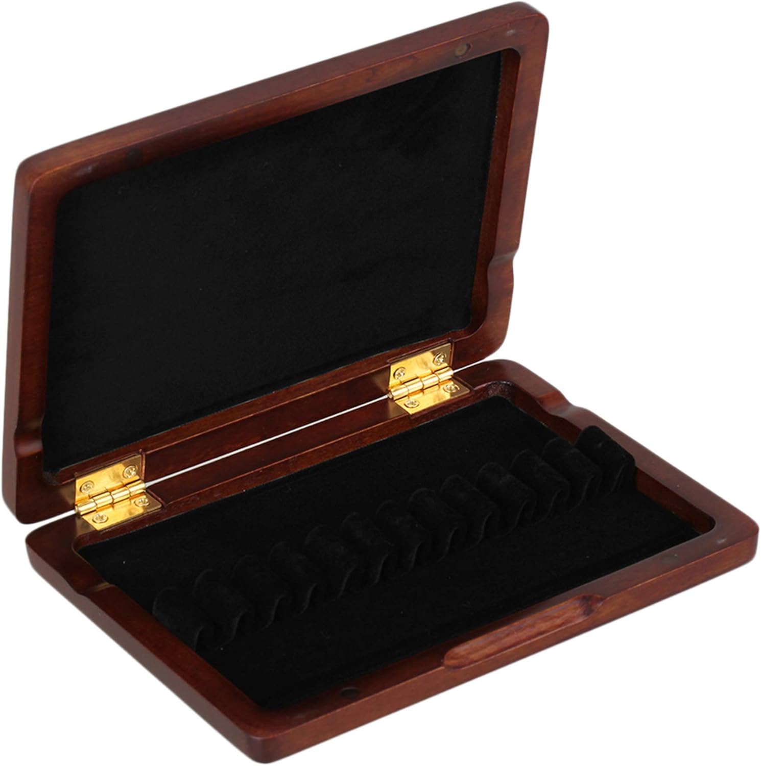 Material: Wood,Flannel,Brass,Magnet Color: Maroon Length:131mm/5.16'' Width:95mm/3.74'' Thickness:21mm/0.83'' Total Size: 131x95x21mm/5.16x3.74x0.83''(LxWxT) Width of the reed holder:About 4mm/0.16'' Distance between the holders:About 6mm/0.24'' Inner Size:117x79mm/4.61x3.11''(LxW) Total weight:101g Feature: 1.Conveniently stores for reeds 2.Ergonomically designed to open and close easily 3.The case can hold 12 reeds,and can prevent reeds from broke 4.The optimal guard against reed warping and tip damage 5. Perfect and beautiful appearance, easy to carry, is an essential fine case for instrument lovers. Notes: This case does not contain the reeds in the pictures, reeds must be purchased separately Package Include 1 x Wooden Oboe Reed Case for 12pcs Reeds