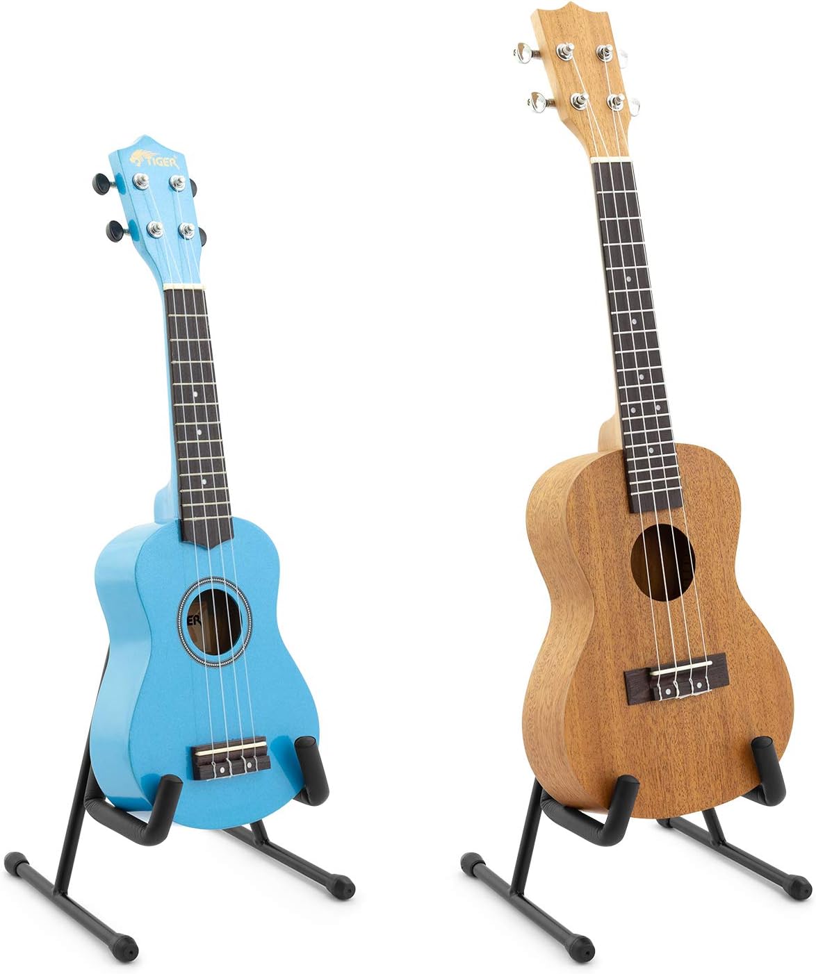 The Tiger UAC19 Foldable Ukulele Stand is the brand new ukulele accessory by Tiger for 2020. Store your ukulele with ease thanks to this foldable, a-frame stand. Finished in a jet black, stealth design you can be sure that this stand will slot perfectly into any setup - whether that's at home or in a gigging environment. Universal for ukuleles, mandolins and violins alike this elevated stand has been designed for your instrument to be in reaching distance at all times. With soft padded foam protecting the lower parts of the instrument and a padded foam back rest you can be at rest knowing that your ukulele will be safe from surface damage whilst using this stand. Weighing in at only 274 grams this stand is a lightweight yet strong option for universal ukulele stands. Offering a small footprint on stage too, the stand only takes up a height of just 29cm, a depth of just 20.5cm and a width of just 20cm.