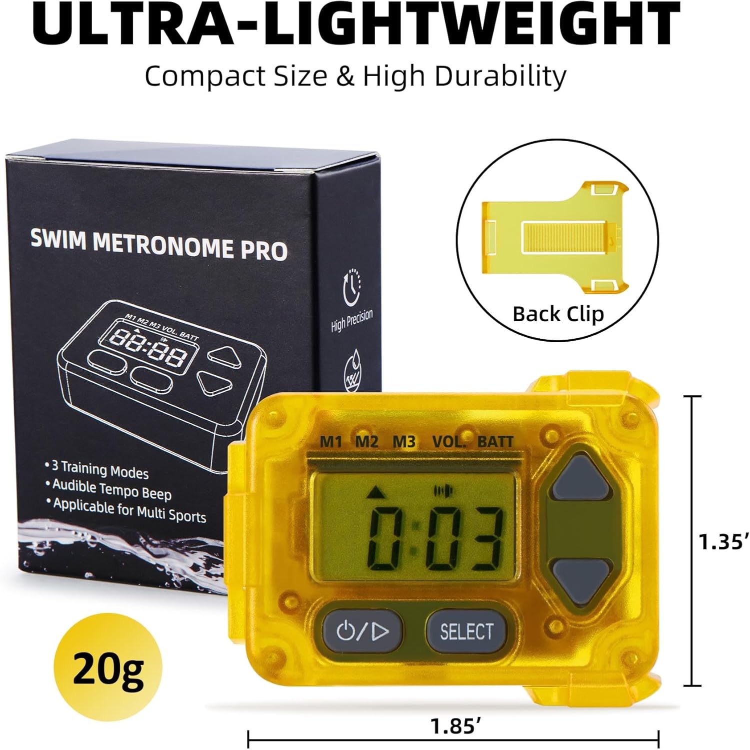 Resseor Waterproof Audible Swim Metronome, Stroke Timer with Three Training Modes, Adjustable Swimming Tempo, Multi-Functional Tempo Suitable for Swimming and Other Sports