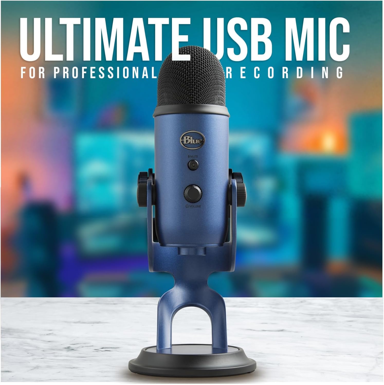 Blue Microphones Yeti USB MicrophoneThe Blue Microphones Yeti USB Microphone creates unparalleled recordings with your computer using Blue's best-selling family of Yeti USB microphones. Now with Blue Voice software, you can craft the perfect broadcast vocal sound and entertain your stream audience with enhanced effects, advanced voice modulation, and HD audio samples. Four different pickup patterns offer incredible flexibility so you can record vocals for music, podcasts, twitch streaming, YouTube videos, or even cryptozoology lectures in ways that would normally require multiple microphones. Whether you're recording at home, on the road, or in the Himalayas, Yeti helps you produce studio-quality recordings every time.Total Recording Control with YetiYeti features studio controls for headphone volume, pattern selection, instant mute, and microphone gain putting you in charge of every level of the recording process. If you’re experiencing distortion or feedback while recording an especially loud source like the deafening sound of an avalanche simply adjust the microphone's sensitivity with the gain control. Or if you want to take a break in the middle of a podcast, use the instant mute button.Innovative Design Makes Recording EasyYeti doesn’t mind getting pushed around, it lets you adjust and pivot the microphone to the sound source, which optimizes your sound quality. Once you’ve achieved the desired angle, simply hand-tighten the set knobs to secure it in place. Yeti is a side-address condenser microphone, so you can capture the best sound by going face-to-face with it.Bundle Includes:Blue Microphones Yeti USB Microphone (Midnight Blue)Closed-Back Studio Monitor HeadphonesPop Filter for Broadcasting and Recording Microphones
